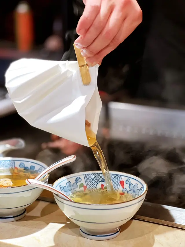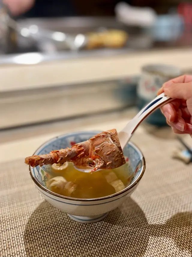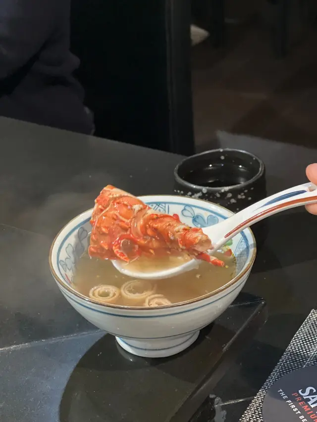 聞說已久身邊好多朋友話這間超好味的鐵板燒,終於嚐到。食材新鮮,調味細緻,的確讓人驚喜,完全可以用高質好味來形容。店內環境寬敞,客人可以圍爐欣賞廚師的烹飪技藝,特別是火焰龍蝦頭的表演,視覺體驗非常震撼。秋田二人前套餐 $888/位季節沙律用上沖繩水雲口感黏滑,搭配酸甜的醬汁,開胃又美味。魚籽鵝肝蒸蛋蒸蛋滑溜,配上鹹鮮的黑魚籽和煎香的鵝肝粒,脂香四溢,十分好味。季節時令海鮮北海道鮮活帶子大粒,用牛油煎香,搭配柚子胡椒和黑魚子,包住食用,味道層次豐富,超好食。鮮活時令龍蝦青龍蝦新鮮,肉質細嫩,搭配龍蝦膏、牛油蒜蓉醬汁,與香脆牛油多士同食,完美搭配。之後還有即席的火焰龍蝦頭表演,儀式感十足。龍蝦清湯用龍蝦頭煮的清湯味道清甜。原隻鮮活南非鮑魚鮑魚鮮嫩彈牙,搭配昆布忌廉醬汁,鮮味十足,口感creamy。香煎頂級鵝肝厚切鵝肝表面煎至焦香,外脆內軟,入口即溶,配上香脆牛油多士,搭配黑醋和菠蘿,減低油膩感。鹿兒島霜降和牛薄燒和厚燒薄燒雪花和牛包住洋蔥、香蔥和乾蒜片,油脂香濃,肉質柔軟。厚燒和牛口感軟腍,牛味濃郁,配鹽昆布更美味。秋田炒飯蛋炒飯粒粒分明,加入櫻花蝦乾、香蔥、煙肉和甘筍,水準不俗。炒野菜炒雜菜口感爽脆,簡單精選甜品銅鑼燒夾住紅豆餡,香甜可口,還有抹茶和雲呢拿雪糕,為今晚劃上完美句號。飲品巨峰乳酸和桃乳酸,兩杯都好飲,前者甜,後者清香。…查看更多