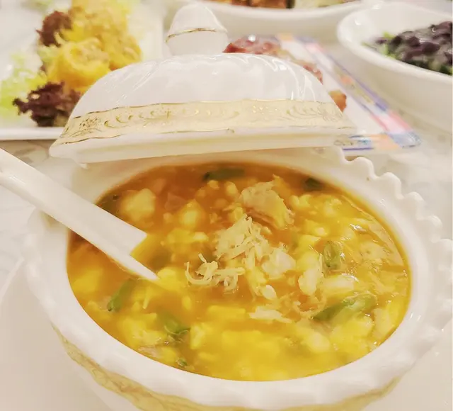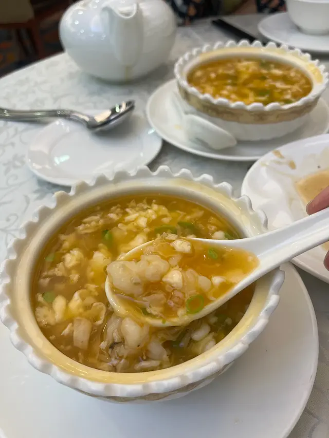 鋿晶館,上環分店,黎食係因為餐廳非集團而係自家製品牌,廚房師傅背景係做左好多年,仲係幾間米芝蓮酒店酒樓做過,所以黎試下!😌環境寬敞,高質酒樓裝潢,除左一般既小菜,仲有廚師新派小菜例如山渣話梅豬手煲、胡椒醬烤牛肋條等🌟龍蝦湯瑤柱海皇羹🍲足料到爆既羹,非常多既海鮮料魚肉、蝦等,爽身,羹唔會太厚身,調味亦好好👍🏻高質,半肥不瘦蜜餞叉燒,真半肥瘦,蜜味唔算好甜唔會搶味,肉質嫩😻脆皮燒腩仔,個皮真係薄脆,燒得幾惹味既燒肉🙌🏻蝦乾啫啫通菜煲,⼀開「啫」🔥好香,啲蝦乾多到😳好好味,仲加埋蝦米、肉碎炒,爆到好香,非常有風味既通菜👍🏻京都焗肉排,擺到靚靚,肉質腍身,好入味,酸甜咸平衡得好好,非常正既京都骨😋菜式睇落同一般粵菜差唔多,但細節就係成個菜既靈魂😈相當高質既酒樓餸菜,值得黎食下!下次黎試埋佢既現製點心👍🏻…查看更多