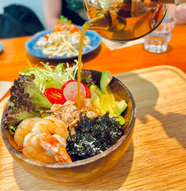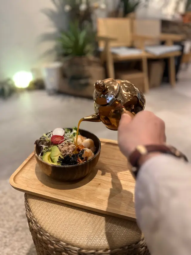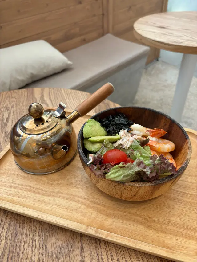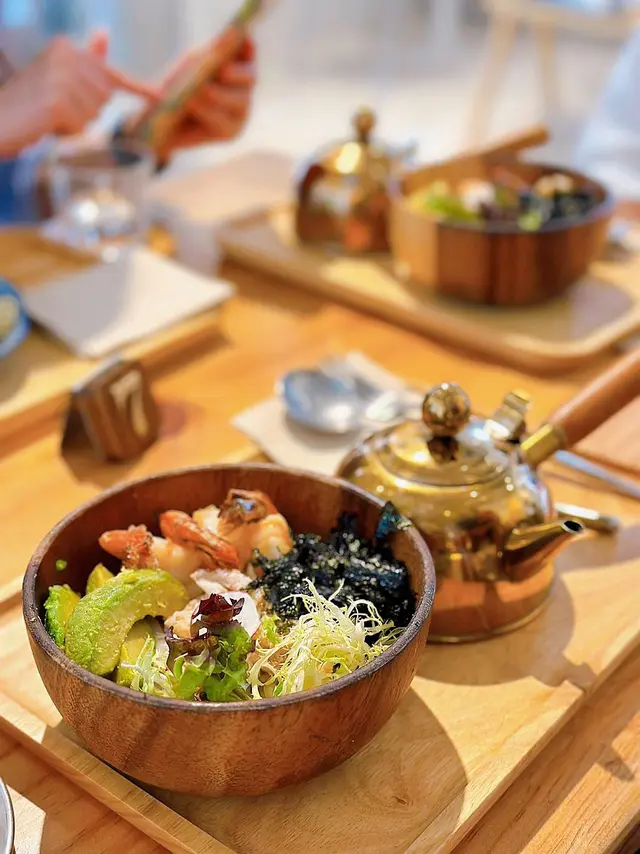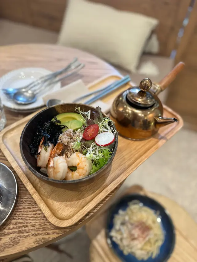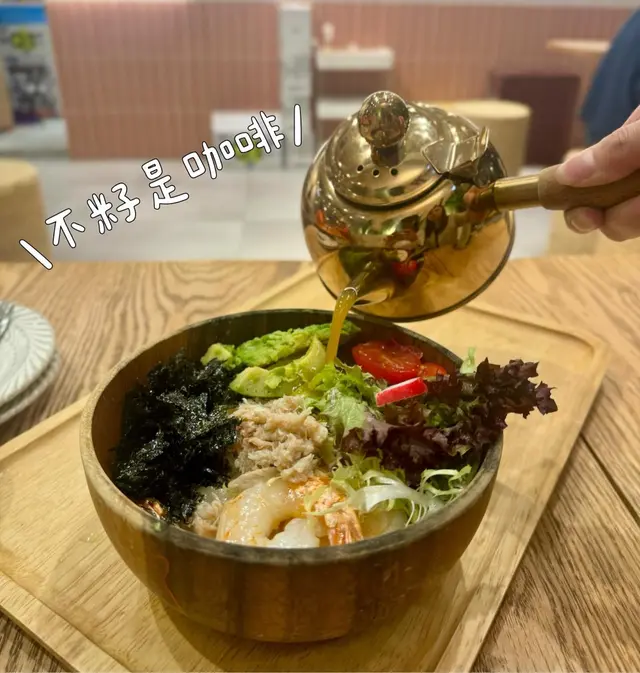 不籽是咖啡這間Cafe由門面至內裏環境都十分優美、舒適。內裏裝修行木系和淺色風格,其中一個區域的地下填滿了細碎的白色小石頭,有一種去了郊外野餐的感覺。龍蝦湯配牛油果大蝦稻庭烏冬 $128呢個餐絕對喺gimmick🥸用茶煲裝龍蝦湯🦞,再由你倒落木碗,倒多倒少隨你(suggest倒曬,免得最濃味、沉底嘅冇倒到出黎),港女打咭一流📸🤳龍蝦湯唔喺預期像西湯般濃稠😌,而是湯底般稀和淡味。但要讚有頗多蟹肉🦀😍,縱使湯底唔濃味,啖啖蟹肉都補救到,加翻海鮮嘅鮮味👍🏻😍小編試過牛油果加䜴油真喺好似食緊三文魚😂,但牛油果配海鮮就第一次😂唔可以話係夾,冇1+1>2的效果,但都唔錯嘅😌 至於蝦,則新鮮脆口❤️,未至於鮮甜但已經收貨👍🏻手打牛肉漢堡扒蒜蓉意粉配黑松露蘑菇汁 $138隻太陽蛋煎得好靚❤️同漢堡一齊食增添濕潤感。漢寶都算幾大,夠厚,有肉味😍,少許肉汁。黑松露份量唔算多,但足夠,意粉醬亦夠creamy👌🏻結論這間Cafe很適合用來打卡,也很適合與朋友一起慢慢食飯、傾偈👫🏻👭🏻👬🏻至於食物的味道則中上,未至於好正,環境>味道,cp值偏低😬份量偏少,男仔可能會唔夠飽😌…查看更多