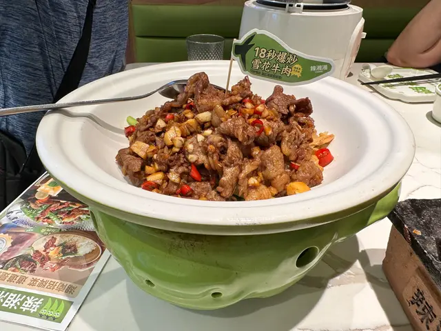 辣椒炒肉 : 真係必點, 真係超好味.18秒爆炒雪花牛肉: 都好食, 但牛肉份量少, 唔夠餸飯.18秒爆炒雪花牛肉, 真係肉少, 其實唔介意加錢多牛肉的. 反而個筍絲底太多托到好似好大碟, 牛肉份量真較少.山楂楊莓特飲: 好好飲,好好飲,好好飲.如果可加湯連飯選擇, 更好.來了咁多次, 有位"啡金短髲"年青戴眼鏡的高瘦瘦男服務員, 又勤力又勤快, 又有禮貌, 臉部表情管理又好好, 服務也好好, 難得請到的優質服務員.