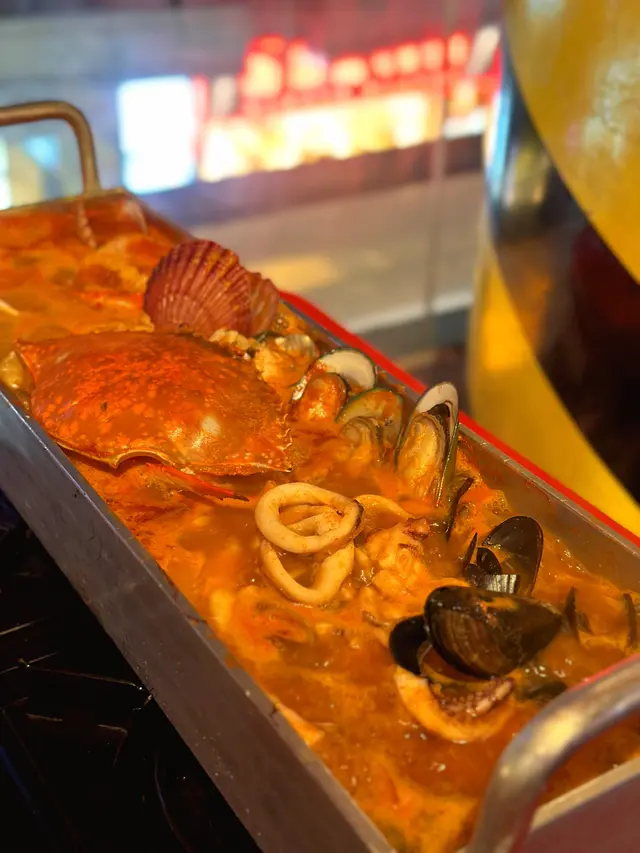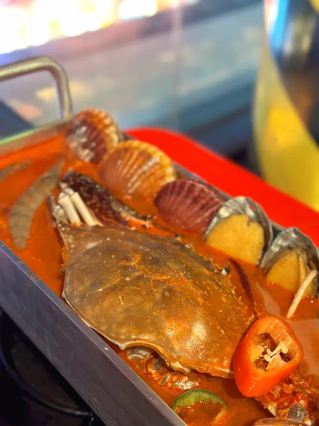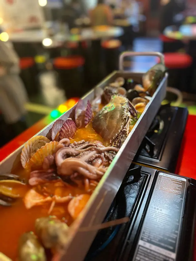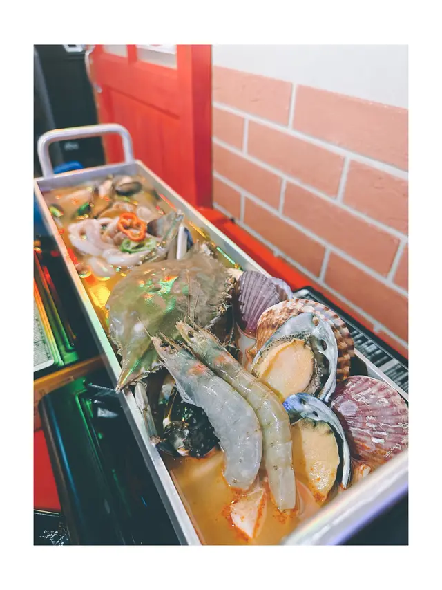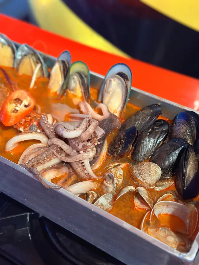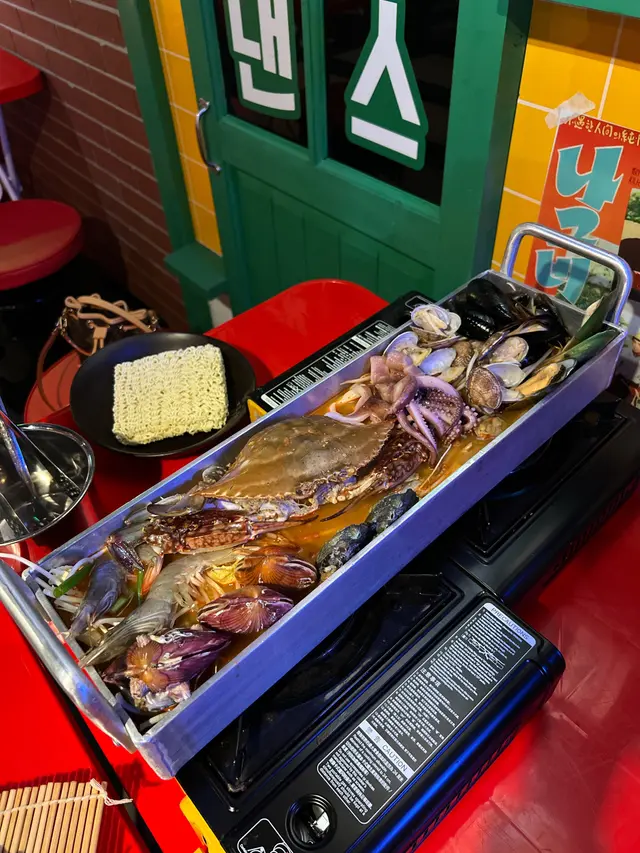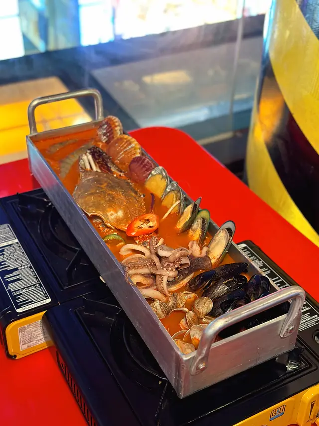 聖誕除夕特別多活動聚餐,今次去左銅鑼灣既Bingo & Cook 同朋友慶祝。餐廳由出lift到內部風格佈置已經韓風復古大排檔Feel,加上聖誕節添置了唔少聖誕裝飾,基本上未食之前可以瘋狂打卡!人氣推介▫️50cm韓式海鮮鍋 $380,基本上每枱必點。湯底係泡菜湯,味道愈煮愈濃味;仲有滿滿既海鮮,有蟹、蜆、青口、八爪魚等等,十分豐富!食蟹嘅季節當然要嗌▫️醬油蟹 $380,兩隻嘅醬油蟹都蟹膏肥美,可惜入口有啲腥,加入蛋黃同紫菜飯會好些少。推薦▫️牛肉炒粉絲 $128,香口惹味!唔夠食仲可以叫多份▫️甜辣炸雞配香腸年糕串 $218,完全大滿足。店內環境寬敞,而且韓feel滿瀉,十分適合一大班朋友聚餐聯誼!喜歡韓風既朋友仔,絕對不能錯過呢一間打卡餐廳。…查看更多