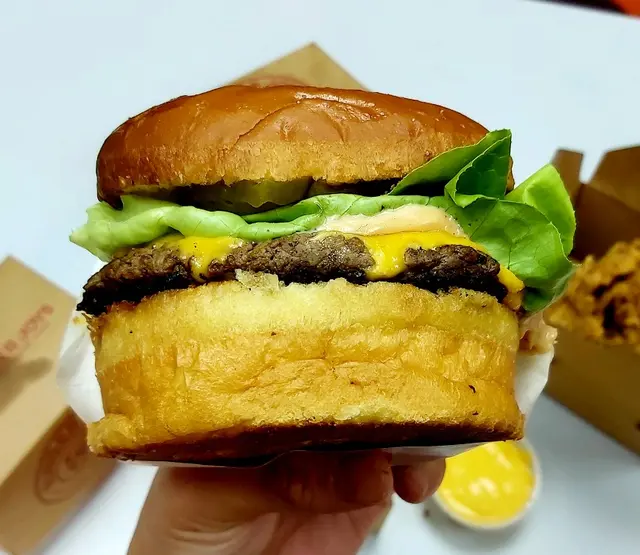 一場世紀豪雨之後,不知何解突然想吃些邪惡飽腹之物,就想到家的附近有一間米芝蓮漢堡店,買回家慢慢品嚐。小人先以一個芝士牛肉漢堡包做主打。煎香的麵包充滿牛油香而不膩滯,脆面更帶有焦香!牛肉肉汁豐盈,每口都是享受。芝士溶化得剛剛好,趁著近似千島醬的醬汁,簡直是漢堡包天花板!水牛城雞翼炸得極其的脆,而中間的雞肉仍可以保持嫩滑。辣汁認真夠勁,但卻又令人欲罷不能,越辣越想食!配上鹹香的藍芝士汁,能稍稍中和一下辣意。蒜蓉薯條雖然是幼薯條,但也吃得出薯肉,絕非由薯粉開成。薯條上是海量的蒜蓉,香到不得了;況且更一點也不嗆喉!米芝蓮的漢堡,果非浪得虛名!…查看更多
