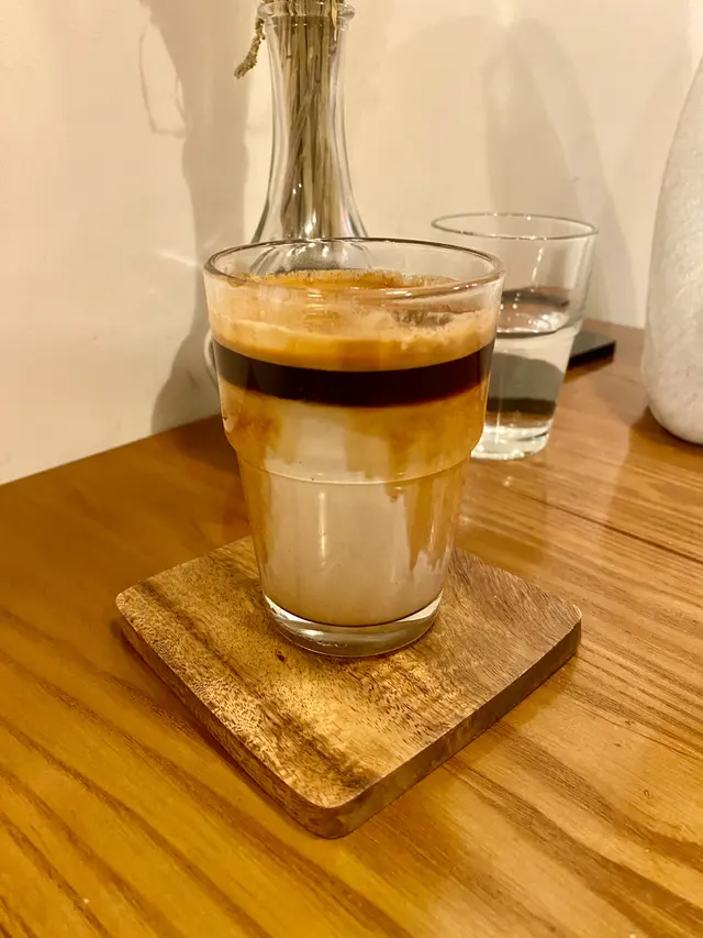 中上環一帶不乏受歡迎的咖啡店,Meanwhile這間咖啡店位於禧利街盡頭,雖不遠亦不易察覺;咖啡店以木色為主調,很多使用器皿都是木製,員工友善,仔細介紹咖啡特色,整體感覺很親切,是一個很適合閒聊的地方。這次到訪純粹是閒逛中上環一帶時,想找找咖啡店坐下嘆咖啡,所以只點了兩款咖啡 【Dirty】和【Hand Drip Coffee】。咖啡師仔細介紹每一款咖啡豆產地和風味,而手沖出來的咖啡質素很高,不同溫度帶來的風味都與別不同。不是第一次喝Dirty,但這裡Dirty牛奶和濃縮咖啡的配搭出來的效果特別郁香,應該與他們用的牛奶有關(忘了是什麼奶),而且分層效果都很好啊! 值得一試!…查看更多