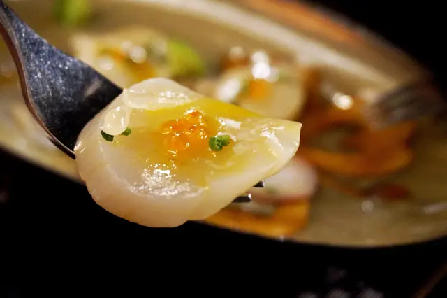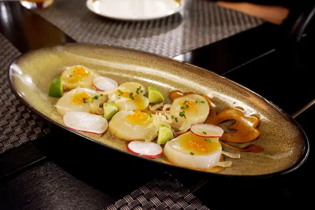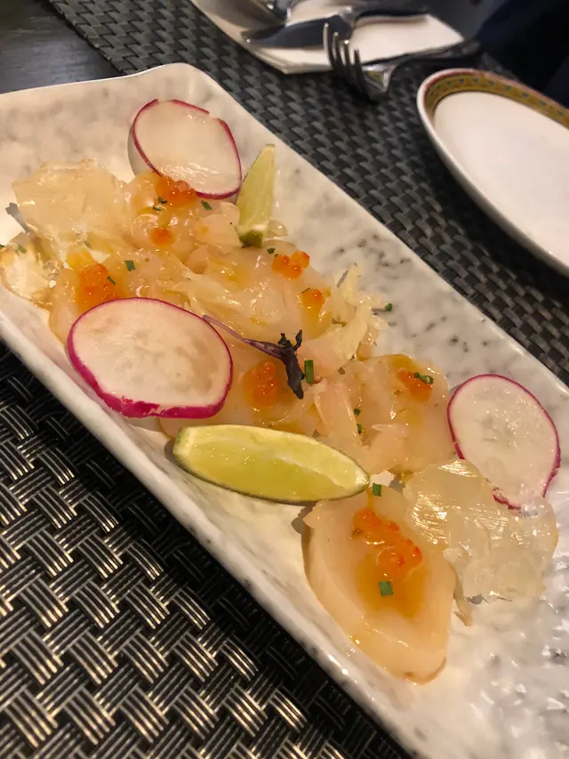 最近從朋友口中知道炮台山有間西班牙餐廳,這次與朋友來吃一個西班牙晚餐。店內播着西班牙文歌曲,特別有格調。這次沒有點西班牙海鮮飯,怕吃了一大鑊西班牙飯,沒有空間再吃其它佳餚,所以點了幾個tapas細嚐。先點一杯Cranberry Juice ($33),是微甜的莓汁,配各款tapas喝也很適合。Gambas($85)西班牙蒜蓉蝦,上桌時冒煙,蒜蓉味濃香,所有蝦已去蝦殼,蝦肉香脆,配酒類更佳。Jamon Iberico($138) 西班牙橡果飼黑毛豬風乾腿(48個月),黑毛豬以橡果作飼料,細細品嚐,火腿有橡果的香氣,風乾後的火腿,有一種獨特風韻的鹹香。Octopus Carpaccio($88) 八爪魚薄片配酸青瓜,中間放着少量飛魚籽,配上薄青瓜片。澆上柚子汁後變得酸酸甜甜,青瓜的清爽突顯八爪魚的煙韌和軟稔,令八爪魚的口感變得更出色。Hokkaido Scallop Carpaccio($98)北海道刺身帶子,味道豐富,用上熱情果醬、柚子增加其酸甜度,而三文魚籽增加爽脆口感。刺身帶子非常軟滑,有入口即溶之感,而且柚子為帶子加添了清新酸甜。置在一旁的青檸啫喱軟稔,充滿清新的青檸味。最後是甜品Churros($68) 西班牙肉桂油條,旁邊是熱朱古力醬,還有味道和口感極佳的雪糕。肉桂油條與我在西班牙吃的有點不同,更軟稔和具麵粉香。先把肉桂油條沾點熱朱古力醬,細嚐朱古力的香熱,再嚐一口雪糕,感受雪糕的冰涼,帶來一冷一熱的味蕾刺激。…查看更多