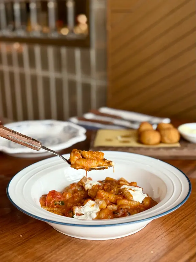 與爸爸一起坐叮叮到跑馬地總站,去到一間位於源遠街街角的酒吧餐廳,玫紅色外牆、原木的餐枱、播放爵士音樂、英式classic餐凳,呢度叫做《Aedes Wine & Pasta Bar》係一間食自製手工意粉的意大利小酒館🍝小小的餐牌上共有8款意粉,其中首6款係由小酒館自製的手工意粉,全部都有特色,6款中有兩款係用薯仔做的pasta、而另外四款則是全蛋麵😋,店員更會捧着一盤手工意粉樣板,逐款介紹🫶🏻超有心思呀!原本諗住就咁食意粉好似有啲唔係好足夠,於是叫多兩款前菜同爸爸一齊分享,分別係:▪️Crispy Potato ball 香脆炸薯波波上的西西羅蝦仁他他打到起晒膠,非常有口感,薯仔波波炸到好香脆,配埋底下的酸忌廉醬,好好食😋▪️ Pumpkin Soup with Parmigiano帕瑪森南瓜湯:南瓜湯好滑好甜好濃,好正🙌🏻接下來就係揀咗兩款自製手工意粉,食完兩款手工意粉之後發現,每一份都會食到好飽啊!唔洗叫前菜都夠晒食🤣▫️ Homemade Malloreddus Melanzana(Eggplant, Burrata Cheese, Roma Tomato Sauce)用薯仔整嘅蟲蟲意粉(似食年糕)茄子布袋芝士蕃茄醬(清啲)有口感又咬口▫️ Homemade Pappardelle Bolognese(Beef, Pork, Tomato, Parmagiano)肉醬闊麵(濃啲)超香(醬汁酸酸,配埋肉碎就冇咁膩)意粉闊麵口感唔似平時食開嘅意粉(好爽口丫)小妹同爸爸都唔算話係好好酒嘅人士,無理由星期六正午就每人叫杯酒飲嘅🤓,每人叫咗杯Latte:Aedes 的Cafelatte ,雖然細細杯但咖啡味好香濃,平日人均消費約$250,就食到高質嘅手工意粉,兩個人共享一碟都好飽,一個人獨食一碟就唔建議食埋前菜🤣不過小妹選擇錯誤,揀咗兩個都係蕃茄醬做base ,如果揀另一款口味就會更食得出美味😋…查看更多