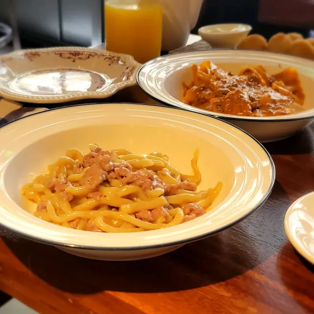 📍Aedes Wine & Pasta Bar跑馬地源遠街14號地舖🍄🥔🍲Mixed Mushrooms and Potato Soup $78🥩🥓Italian Cold Cut Selection $128👨🍳🍝Homemade Pappardelle Bolognese $168👨🍳🧈🍝Homemade Scialatielli $158👨🍳🍨Homemade Gelato - Madagascar Vanilla $48最近有啲想食手工意粉🍝於是就book咗跑馬地嘅@aedeswinepastabar😋😋雖然我地去到都係啱啱6點,但已經坐咗幾枱客(仲要係平日🙊),好彩有book🤣餐廳嘅環境幾靚、幾舒服,而店員嘅服務態度都好nice😊喺點餐前店員會介紹佢地有咩手工意粉,同埋根據客人嘅喜好去推介❤️我地覺得最深刻係佢地最Signature嘅Homemade Pappardelle Bolognese🍝用全蛋做嘅手工闊意粉,口感非常好😍手工意粉果然唔同啲🤤肉醬嘅芝士味🧀極香濃😋另外Homemade Scialatielli嘅賣相有啲似Cabonara😆意粉用薯仔粉做🥔形狀有啲似烏冬🤣口感比較硬,鐘意有𡁻口嘅朋友可以試吓😋總括黎講佢地嘅手工意粉水準都唔錯,下次黎可以試埋佢其他手工意粉,我想食貓耳朵😆#bunnytummy_港島#bunnytummy_跑馬地#bunnytummy_西餐#bunnytummy_手工意粉#香港foodie #食好西 #香港美食 #hkfoodblogger#Aedes #Pastabar #手工意粉 #foodphotography #italianfood #hkfoodlover #winebar #hkfoodstagram #hkfoodblog #hkgirl #hongkongfood #hkfoodporn#hkfoodie #hkig #香港好去處 #拍拖好去處…查看更多