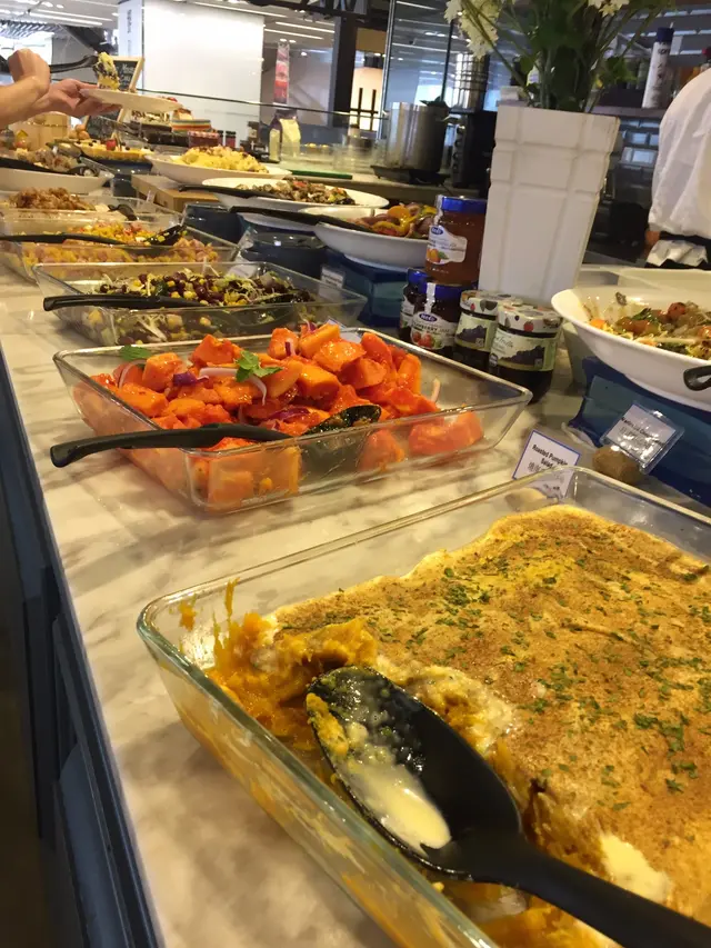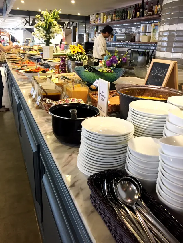 與同事食Farewell lunch響太古區選了一間比較得體又可以chill住咁傾計嘅地方。Lunch set都有唔少選擇, 有香草雞胸﹑意粉﹑焗飯﹑紅酒燴牛等等。Lunch set加$38就有任食salad bar, 呢個係比較吸引嘅~有別於一般嘅生菜蕃茄粟米食材, 仲提供好多特色款: 甘筍湯﹑凍火腿片﹑泰式木瓜沙律﹑胡麻汁冷豆腐﹑焗南瓜蓉, 仲有精美甜品。期間都不斷refill, 新鮮又保持水準。至於主食, 點左紅酒燴牛配紅糙米飯。牛柳好淋又唔韌, 而且好香紅酒味。加上健康紅糙米飯平衡返唔會漏,唔錯!店員話, 如果想淨食salad bar都係$78, 一定會回頭食!! …查看更多