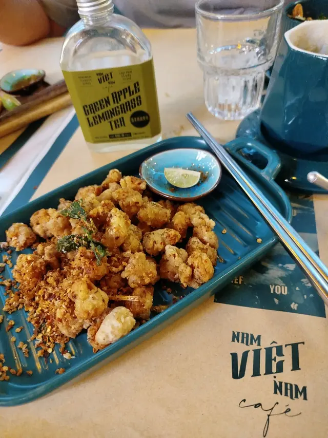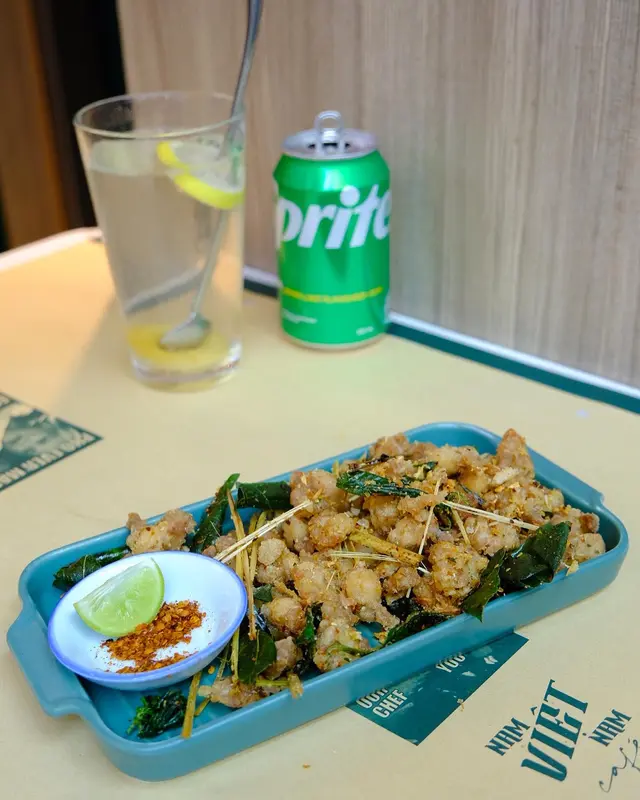 開學第二天,壓力山大,好友推介旺角彌敦道的越南餐廳,讓我與她邊吃邊吹水,舒緩心情。餐廳地點便利,離旺角地鐵站數分鐘,旺角東站約十分鐘。環境優雅寧靜,播著悠悠樂韻,大玻璃窗觀望外面天空,裡面食客氣質高雅,無人喧嘩,完美適合放鬆聚會。Shake Shake 雞軟骨外皮炸得金黃酥脆,內裡軟嫩,搖一搖讓香料均勻裹上,調味微辣帶點香,每咬一口都香脆過癮。南越炸豬肉春卷(6條)外皮薄脆,內餡豬肉鮮甜,口感豐富,沾上酸甜微辣的魚露醬,滋味更上一層。越式秘製香茅豬仔骨是全場焦點,香茅與蒜香滲入豬骨,烤得外焦內嫩,肉質軟腍多汁,微甜的醬汁平衡了香料的濃烈,令人吮指回味。南越法式麵包(一分切二)外脆內鬆,抹上特製牛油醬,帶淡淡蒜香,札肉香紅蘿蔔絲爽,簡單卻令人滿足。鹹檸豬頸肉撈檬酸辣開胃,豬頸肉爽滑彈牙,鹹檸檬的酸香與辣椒碰撞,刺激味蕾,令人食慾大增。飲品方面,**班蘭奶蓋咖啡(凍)**班蘭香氣濃郁,奶蓋綿密,咖啡順滑微苦,清涼解壓。**蜜桃青蘋果玫瑰花茶(熱)**果香清新,玫瑰花香幽雅,溫暖舒心。這餐廳菜式味道層次分明,環境舒適,與好友暢談間壓力全消,值得再訪!