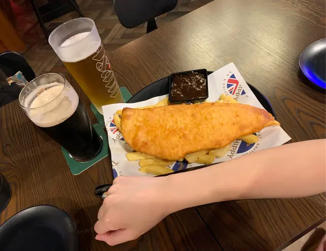 自從新年復工之後,我幾乎每一日都要OT,日日都好大壓力🥲,真係唯有放工去食返啲好嘢,叫做搵返生活中的小確幸🥹 之前已經bookmark定呢間餐廳,因為見佢個炸魚薯條真係超級大條,想試吓味道如何😜 我當日大概8:30左右到餐廳,除咗我哋之外,只有另外兩台客。其實餐廳環境唔錯,啲裝修都幾雅致、幾有英國風,而且聲稱所有食材都係英國空運到港,有啲唔明點解得咁少客人🤔Signature cod (12oz) + chips ($198)佢有得揀6oz 定係12oz既炸魚,不過佢哋價錢只係相差$50,但係份量爭一倍,所以我都係建議叫大份😆 個炸魚真係超級大條,基本上有我既前臂咁長,真係超誇張。不過我有個英國朋友同我講,當地既fish and chips真係有咁大條🤪 跟餐本身已經配咗牛肉醬,不過我個人覺得同個炸魚薯條唔太夾,我都係鍾意點茄汁多啲😆 炸魚外皮簿得黎又幾挺身,食落脆口。而魚肉份量好多,雖然說不上好嫩滑,但有魚味得黎又唔會腥。而薯條🍟係粗身既薯條,攤咗一陣都唔會好快變淋👍🏻Beef + onion ($78)本身冇打算叫批,但係店員好熱情咁推薦呢個Beef and onion,我就即管試吓啦。點知有幾有驚喜喎。用刀切落去就發現佢個外皮幾酥脆,即使入邊有肉醬都唔會淋咗。而內餡入邊嘅牛肉同洋蔥嘅味道好夾,推薦👍🏻Asahi pint ($58)食Fish and Chips又點可以冇啤酒?🤪 於是我叫咗杯Asahi 黎啤啤佢😆 相信有飲過呢款啤酒嘅朋友都知佢既苦味冇咁重,容易入口,所以我差唔多飲晒成杯🤭 (醉)Guinness pint ($88)男朋友叫咗呢杯黑啤,佢話飲落冇咁易肥喎😆 同我個杯對比,呢杯的確冇咁甜,而且麥味重啲🤏🏻…查看更多