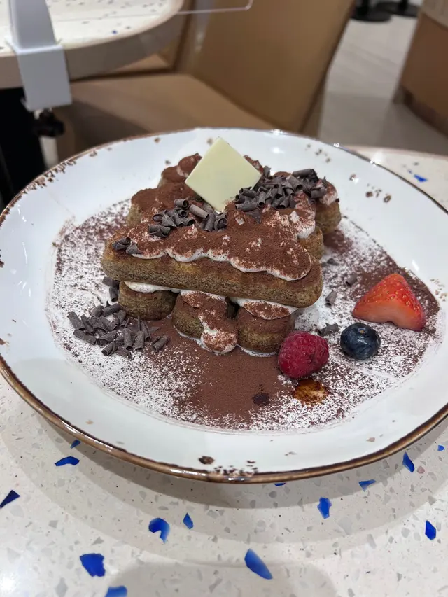 我係一個tiramisu 控只要間餐廳有tiramisu 我都會同一餐叫重覆嘅甜品今晚放工後 本來想去同場嘅泰國餐廳點知去到門口 入面有枱都話full 咁轉場啦 本身係想食pancake 但剩食甜野 男友個胃一定唔夠所以叫左個意粉出奇地味道唔差 而且蟹肉仲要幾多所以都好滿意根住叫左甜品梳乎厘pancake 蛋味濃但唔食雞蛋嘅我接受到佢鬆軟到適中 唔會好快就塌而且呢個價錢有3塊算reasonable 至少合理過元朗某餐廳 由3塊變2塊之後到Tiramisu 平時食開嘅手指餅滿滿咖啡及酒香但手指餅會淋晒而呢個係唔會淋晒 仲係手指餅原有硬到男友話佢鐘意食呢種tiramisu 但我就略嫌硬左少少但味道係ok 至少有85分而咖啡我都叫左Tiramisu coffee混合左tiramisu 嘅cheese 嘅咖啡唔會太甜 而且咖啡唔酸 幾好飲總括黎講 我會再encore 佢地嘅pancake