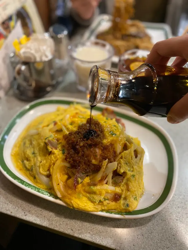 炒粉麵飯夠鑊氣, 港式西餐茶餐唔少得, 野飲有傳統滾水蛋/杏霜又有新潮果味梳打🍹 未試得哂menu咁多樣野!其中我最encore嘅係叉燒蔥花滑蛋飯蛋量多到蓋過哂成個飯, 加埋洋蔥煎到個底有芙蓉蛋嘅香, 個面仲夠滑. 叉燒偏瘦但唔會柴, 加埋個XO醬真心鮮味