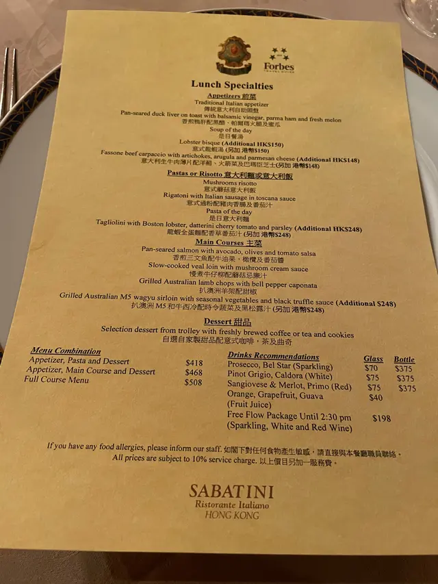 Sabatini 意大利餐廳優惠: