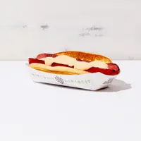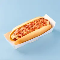 全天然牛肉腸,配上特製車打及美國芝士醬,以及全天然蘋果木燻煙肉