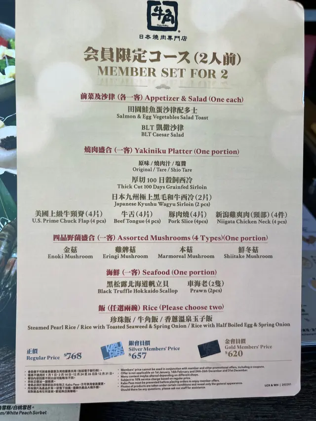 牛角日本燒肉專門店 (皇室堡)條款及細則: