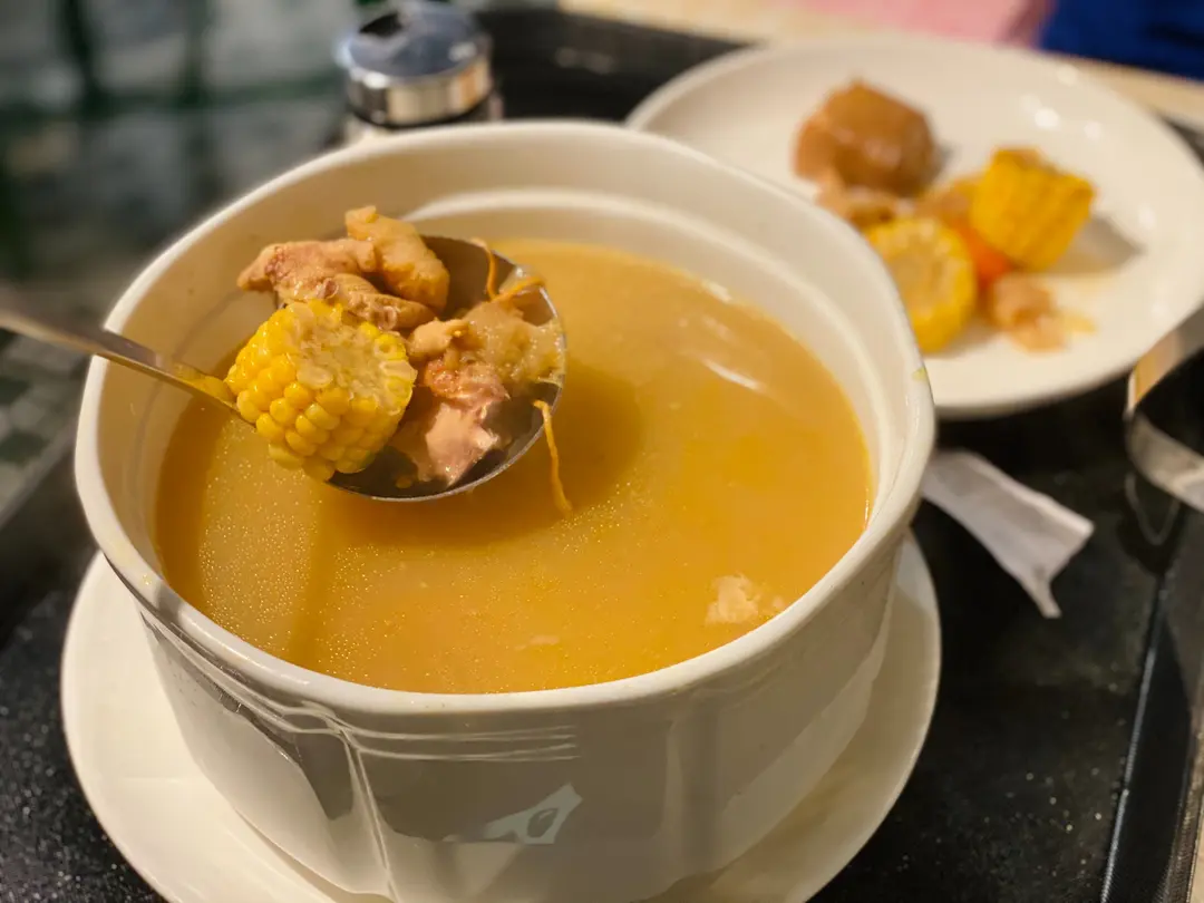 猴頭菇蟲草花雪耳紅蘿蔔粟米准山螺頭煲豬骨湯(細)