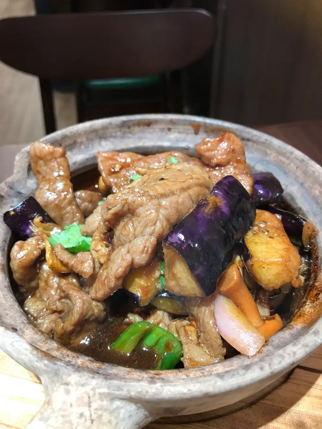 Holy basil beef & eggplant claypot