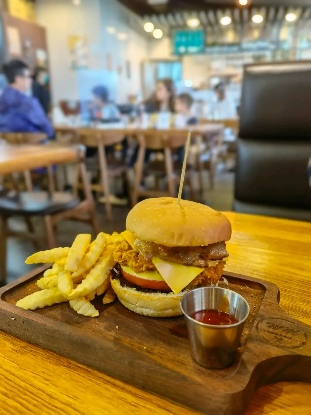 雙層檸檬烤雞拼香辣脆炸雞芝士漢堡配薯條