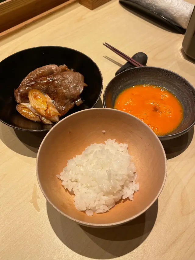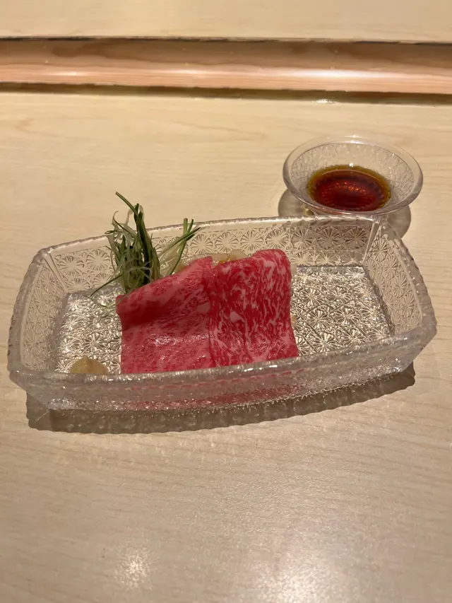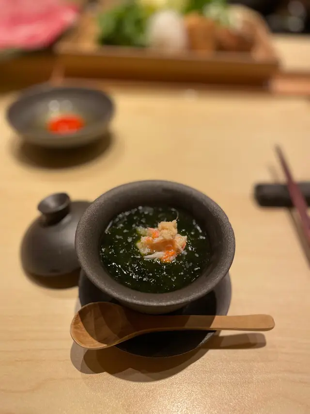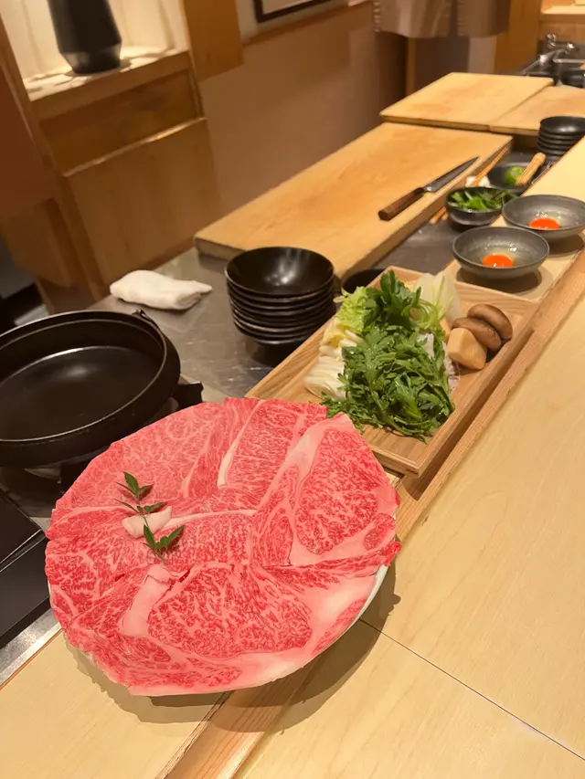 Sukiyaki mori難book應該好多人都知!之前我誤打誤撞早一個星期打電話去竟然有book到 mori kyuu! 佢哋每段時間大約只有10個位,師傅會專注服務一枱,服務氣氛都好唔錯。Lunch相對上平小小,如果第一次食來講揀lunch都適合!-✅醃漬菜心+紫菜蟹肉茶碗蒸。菜心用左菜花部分,食落當然嫩。另外仲有兩粒黑豆。茶碗蒸有一絲絲紫菜,蟹肉都好多。蒸蛋滑嫩,最特別係有d薑味,感覺要來癖寒/癖腥就最啱不過😌-✅✅✅用上近江A4和牛的三個部分組成,西冷、肉眼同肩胛。每人大概有3-4片,呢個份量啱啱好。師傅會根據食客進度一步一步煮。白飯可以任添,個人覺得最多添一次就好了!留肚食最後的飯🤩 食邊個部位都有分先後次序,同配搭的蔬菜。廚師會將d好肥的邊都先切走,好仔細🥹-每塊煎煎之後灑上砂糖+少少壽喜燒汁,味道絕對唔會過鹹。全部其實都好出色,西冷的油脂最豐富,其後係肉眼,再到肩胛。西冷的油脂多到食完會哇一聲,肉質最軟,入口接近即化🤣 肩胛牛的肉味最濃。-加$100的牛舌雖然係薄切,但煮完都唔韌,爽彈爽彈😋-蔬菜有娃娃菜、冬菇、皇帝菜、豆腐、麵筋、春雨等。落的壽喜燒汁唔會太多,煮菜都唔會太鹹☺️ 最鍾意豆腐洋蔥春雨,呢幾種都特別甜。-最後的滑蛋牛肉飯超好食🤤叫多蔥無錯🥳牛肉切到好細粒,被滑蛋包住,加埋落飯到,令到飯粒都充滿蛋汁,可以食大大碗。日本蛋蛋香超級濃😬加d葱除左甜甜的汁味之外,仲會有啲辛香。-甜品的🍓雪糕就正常咯。-成餐都好滿意,而呢個價錢都覺得好ok! 關西風同關東風壽喜燒,我一定鍾意關西風多好多!將d肉肉煎到焦香焦香好好食👍🏻…查看更多