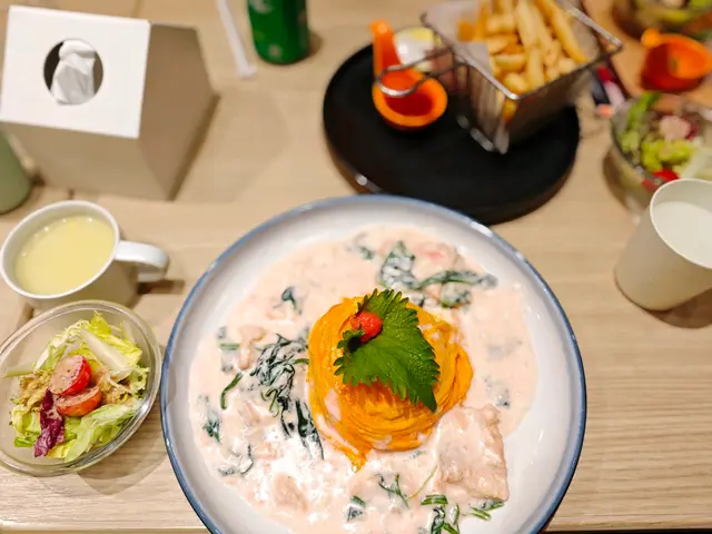 たまご園是以雞蛋為主題的餐廳,環境寛敞,設計可愛!除了美食外,還有兒童遊樂區,非常適合帶小朋友來吃飯。🔸雞肉親子丼雞肉好腍,而且被醬油完全吸收,加上滑溜溜的雞蛋,口感細膩!🔸 燉牛肉蛋包飯牛肉燉得好軟,肉質鮮嫩多汁,配上醬汁超級下飯!🔸黑松露薯條薯條炸得十分脆!黑松露醬亦十分香濃!🔸芝麻雞翼雞翼炸得金黃酥脆,內裏肉質鮮嫩,十分香口!🔸草莓疏乎厘濃濃的蛋香,口感超級柔軟,加上草莓醬酸酸甜甜,很滿足!…查看更多