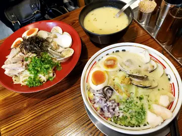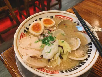 依家走入10間拉麵店有9間都有出白湯拉麵 大熱大熱!!!!本人好鍾意 因為濃得泥鮮 鮮得泥膠 膠 as in 有collagen嘅feel 沒有毒舌成份😂呢度加埋蜆 簡直升晒班鮮上加鮮! 趁熱飲個湯簡直不得之了😭😭😭😭😭😭😭oh hello仲有松露味。。。。。 個輸字點寫??????仲有大量蔥同洋蔥 更香口!!!!蜆呢 是大大顆的 鮮甜軟熟但係沾麵汁就傷心了好稀哦🥴 完全做唔倒沾麵嘅狀態😅味道:7/10Strike Noodles白湯蜆松露鹽味拉麵 $98特製鹽味湯沾麵 $98📍尖沙咀…查看更多