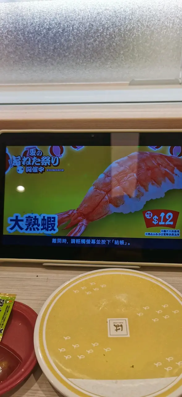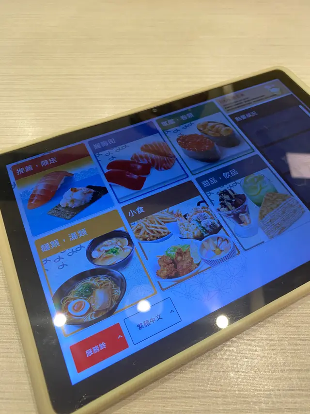 之後決定見到人哋果d個樣正常我先點,三文魚安全,仲有見到油甘魚係靚嘅,ok!仲有一樣野,佢個顯示器,提大家睇多幾版先好禁果樣野食。例如,叫左炸鰈魚壽司,開心嘅,點完先發現下一版係他他醬配鰈魚壽司