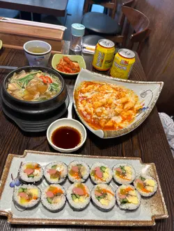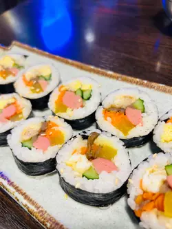 紫菜包飯餡料豐富,分別有香腸、雞蛋、紅蘿蔔、醃黃瓜和青瓜等,口感多層次
