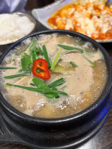 這一鍋湯飯非常足料!鍋內放了原隻童子雞,雞殼內再藏有米飯、蒜頭等食材。糯米飯早已燉至軟爛。雞髀位置的肉質相對嫩滑:),其餘的就偏柴一點。湯頭除了有雞的鮮香,還有淡淡的人蔘甘甜味