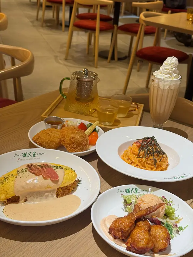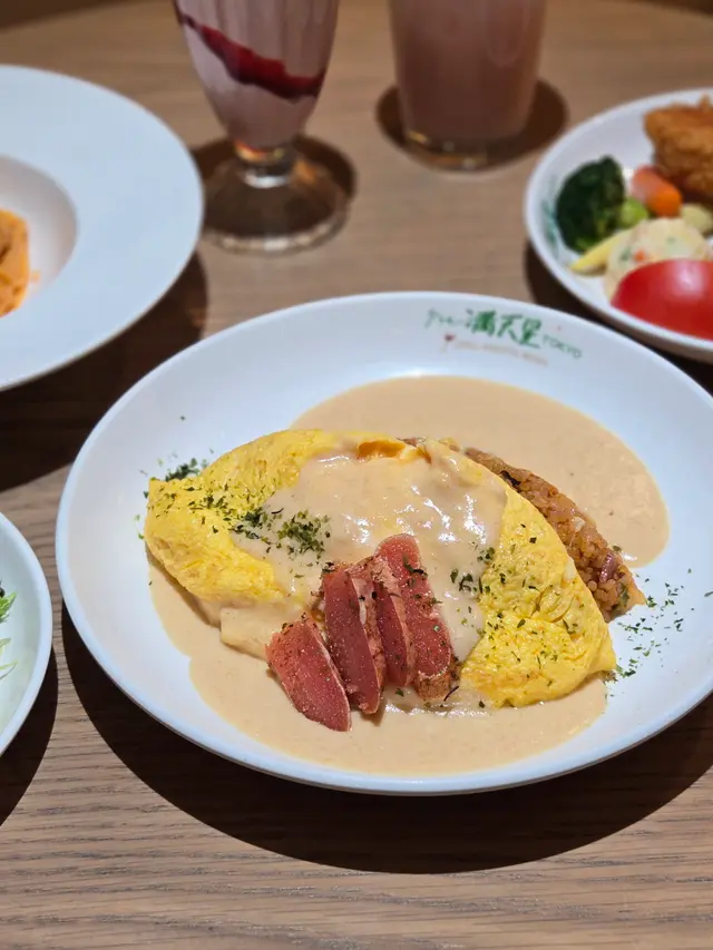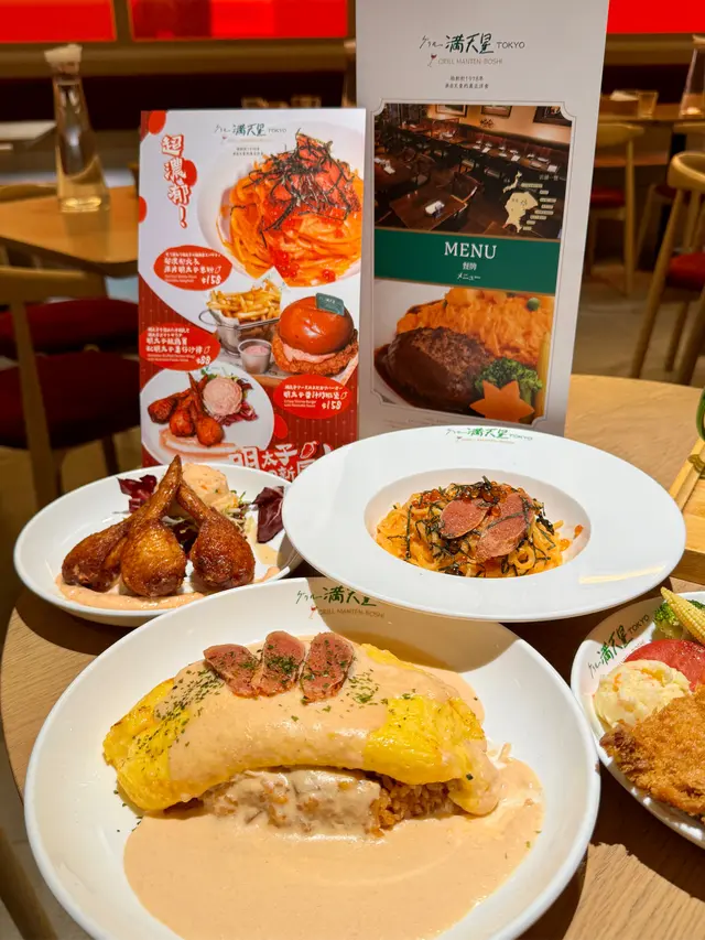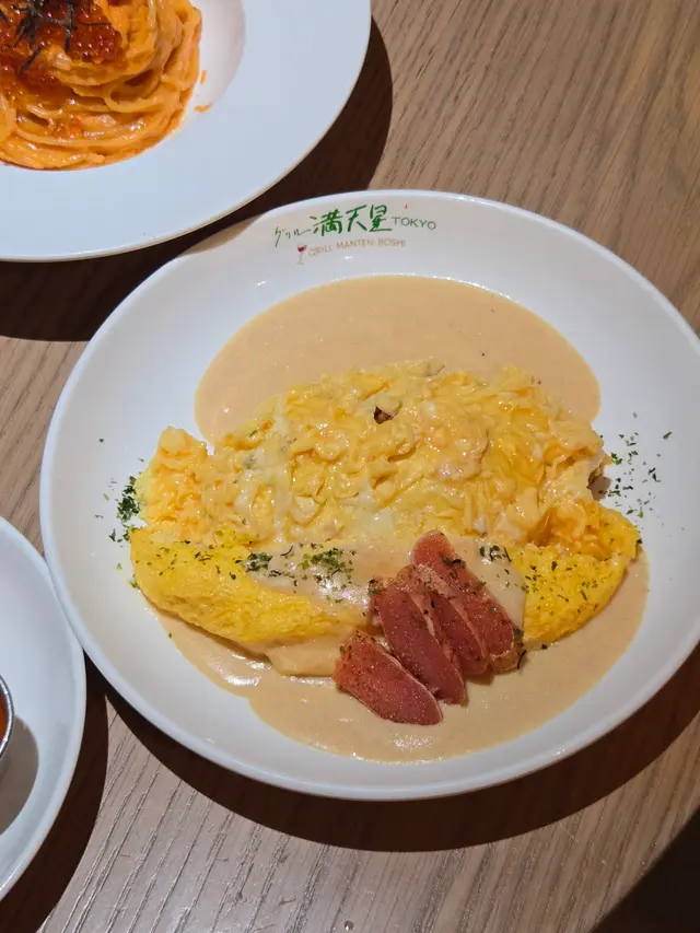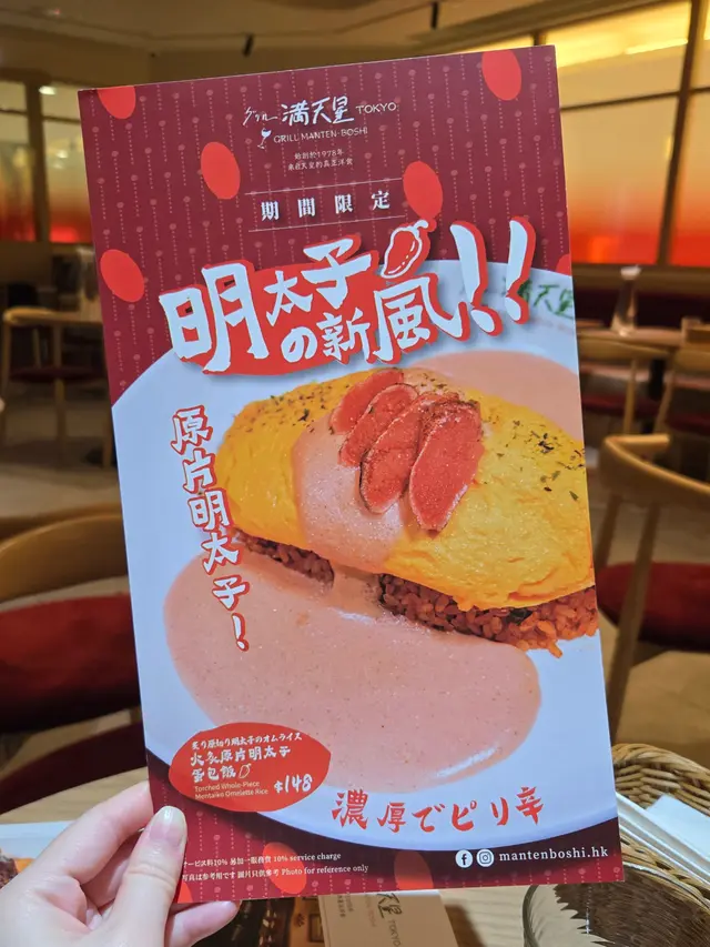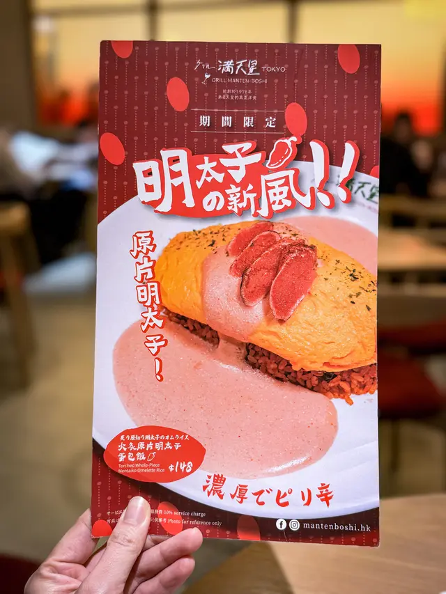 日本美食當中除了刺身之外明太子可說是我愛的美食!那種鹹香滋味配任何食物也能增添光芒,這夜我就是衝著明太子之名去大嘆日式洋食。這夜跟車爸爸去到來自日本東京超人氣著名日式蛋包飯專門店グリル滿天星,皆因他們剛推出了明太子新菜式,我這個明太子粉絲當然要第一時間去朝聖啦。飲品車爸爸選了藍莓芝士蛋糕奶昔$78!口感非常柔滑帶滿滿的藍莓芝士蛋糕香甜的味道,而且超大杯加上綿滑忌廉喝罷已經飽了五成。而我則選了清爽的巨峰乳酸梳打$58!酸酸甜甜味道加上梳打的微泡喝下去就是解渴,而且還配有新鮮的莓果顯得份外吸引。粟米蘑菇湯$58!異常濃稠的粟米湯味道超級香甜,內裏還有不少新鮮蘑菇及粟米粒,非常適合愛品嚐濃湯的朋友。牛油果大蝦凱撒沙律$128!份量不少絕對足夠我倆分享,新鮮的沙律菜清爽鮮味好可口,配搭大大隻爽彈大蝦及清香牛油果,吃下口感非常豐富而且味道清新怡人。超濃郁火炙原片明太子意粉$158!蔬菜配搭明太子煮成的醬汁味道超香濃惹味,意粉煮得恰到好處勁掛汁是我喜歡的口感,搭上原片炙燒明太子及三文魚籽一起品嚐實在太唰嘴了。火炙原片明太子蛋包飯$148!火炙原片明太子安躺於炒滑蛋之上,下層是以自家濃湯汁燉煮而成的日本七星米飯,淋上澎湃的明太子醬汁這賣相已經令我非常有食慾。破開炒滑蛋之後內裏仍然呈現流心狀態!內裏還有Mozzarella Cheese非常誘惑。將明太子、滑蛋及米飯混在一起放入口中品嚐,顯現出滑溜甜美及鹹香的多層次滋味,是令人很回味的和風滋味。甜品我們選了兩款來開心Share!楓糖牛油梳乎厘班戟$128,上檯的時候已經聞到楓糖香甜的味道令人超期待。品嚐之前將附隨的風糖漿淋於班戟之上,梳乎厘充滿空氣感口感非常鬆軟富蛋香,配搭碧根果仁、輕柔不甜忌廉及楓糖奶油一起品嚐,這味道真的好吃到出神啊。最後還有季節限定的日式白桃巴菲$138!內裏有滿滿滑溜的甜美白桃果肉,配搭香滑軟雪糕造就成豐富的甜美滋味。如果您跟我一樣喜歡品嚐明太子鹹鮮滋味那就得快去滿天星朝聖喇。…查看更多