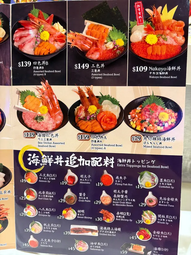 呢間魚生飯係康怡廣場都開左一段時間,每次夜晚經過,得佢同大户屋兩間餐廳要等位!適逢颱風天,唔適合出遠門,就試下屋企附近既魚生飯☺️每份定食都包括一大碗麵豉湯🍴,材料有大量白紅蘿蔔片同三文魚肉,味道意外地鮮甜,有別於一般偏鹹既麵豉湯!🥢炙燒 三文魚腩丼厚切三文魚腩鋪滿壽司飯🍚 先炙燒三文魚表面,燒至少少焦口,再點上明太子醬,味道好夾,幾有驚喜!魚腩油脂豐臾,不過太過肥美食到一半有啲油膩🙈如果上下都可稍為加強炙燒或者有其他既調味,可能會無咁乏味!整體黎講呢個價錢有咁既質素都好滿意了🫶🏻🥢免治金槍魚帆立貝丼相比起三文魚丼,呢個刺身分量比較單薄😢帆立貝一開二對半切,有五粒左右,味道中規中矩啦,不過大小搭夠!免治金槍魚上面撒滿白芝麻同青蔥,食落無腥味,加小小豉油配飯食岩岩好!兩款刺身味道都合格,只係如果可以俾多啲料就好!😂📍ナカヨ食堂太古康山道1-2號康怡廣場南座AEON地下…查看更多