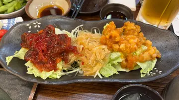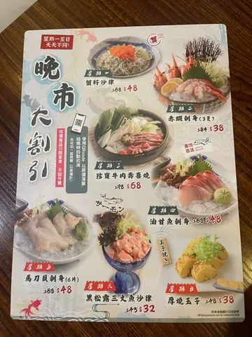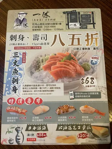 前陣子會去 一休居食屋日本料理,是因為朋友的推薦。說是食物不錯且用餐不限時,而且營業時間也會開到比較夜。約了幾位朋友來聊天敘舊會是不錯的選擇,而且這裡有個日式包廂。要說這裡最吸引的會是刺身拼盤。🐟特上刺身拼盤 (HKD 368) 有海膽、厚切三文魚、甜蝦、吞拿魚等,品項很多且都很新鮮。🐟鯛魚刺身薄切 (HKD 58)是星期三限定,這個價錢也太優惠了吧。鯛魚口感很清爽。🐟三文魚刺身 (HKD 68 / 10切)每片都很有厚度,油脂分布均勻且肥美。熟食方面也很多樣化,而且也有一些很適合邊聊邊吃的下酒菜。像是酥炸外層的爽脆炸雞軟骨粒 (HKD 48),單吃也頗不錯的啤酒味薯條配芝士黑松露醬 (HKD 76)。🐮牛肉壽喜燒鍋 (HKD 68)牛肉片的份量頗多,還加了一顆生蛋,湯頭亦滿甜的。🍆蒜燒茄子 (HKD 38)香氣濃郁,吃落是滿滿的蒜香味道。👅鹽燒厚切牛舌串 (HKD 78 / 2串)燒得很有水準,口感彈牙還帶有咬勁。🥟明太子雞皮餃子 (HKD 58)外脆內嫩,而且都幾多汁。🐟炙燒鰻魚玉子燒 (HKD 68)甜甜的玉子燒加上炙燒過的鰻魚,鹹甜交錯幾滋味。整體來說,這間的CP值很高,會想再來和朋友聚會用餐。…查看更多