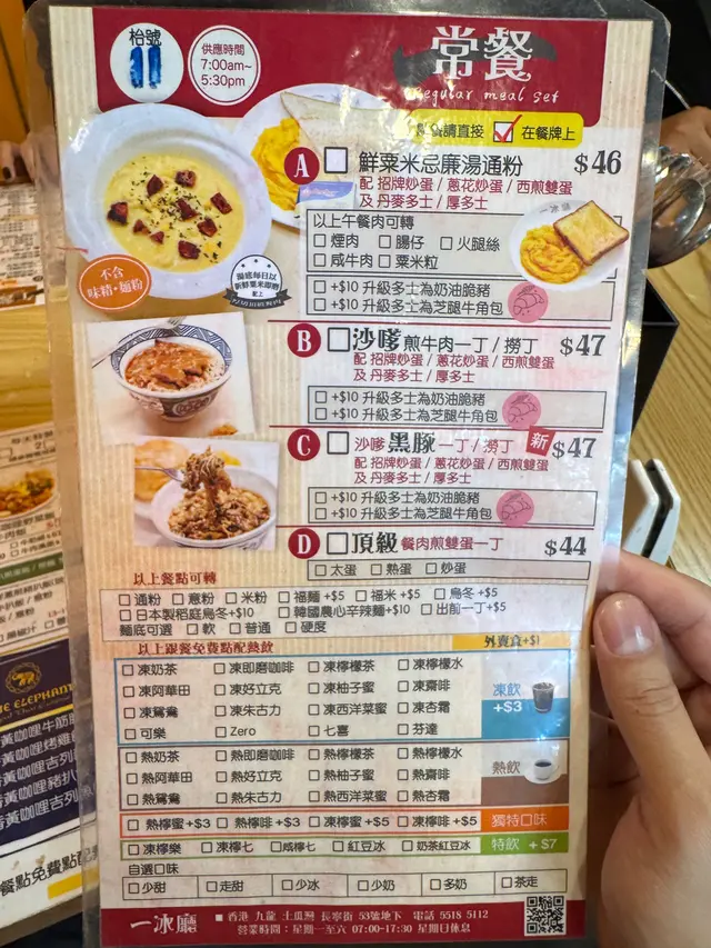 本身很期待…叫了K字頭的外賣,「鮮粟米忌廉湯餐肉通粉餐」,鮮粟米忌廉湯完全淡而無味,顏色亦偏米色(與圖文不符),所謂手打粟米及沒有落麵粉完全喝不出來,而且湯的份量極少,加上意粉也沒有外賣盒的一半,意粉偏硬而份量也偏小。餐肉也預了不多,丹麥麵包及炒蛋最正常。另一個「滑蛋蔥花叉燒飯」份量亦不多,$7x性價比甚低,男士吃不飽。餐具只有一隻叉、一隻羹但有兩支飲品棒,所以是預客人怎樣用?餐具也要節省成這樣真的有點說不過去。最後想說,本身這是土瓜灣名店,食評也很好,是抱着期望,可惜應該不會再有下次了。…查看更多