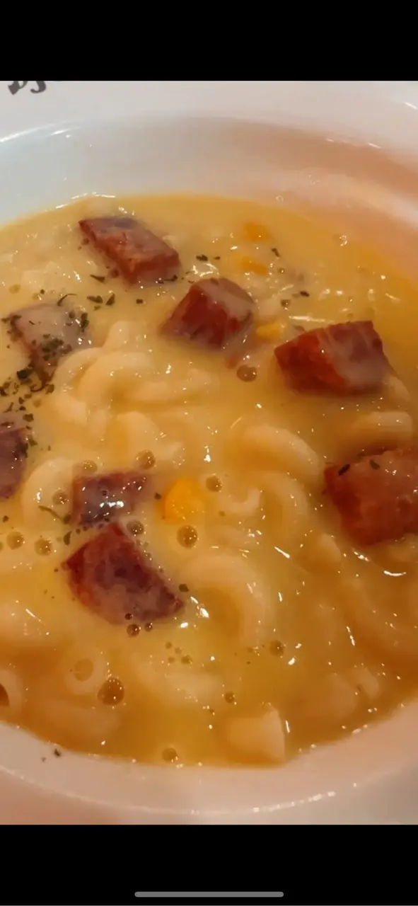 鮮粟米忌廉湯餐肉意粉