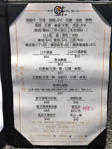 餐廳位於鰂魚涌太古坊隔離既呢間燒味飯裝修時尚型格,有別於傳統燒味舖,店舖面積寬敞,作為打工仔,中午過嚟用餐體驗良好,而且價錢合理又份量十足,老闆仲好熱情咁推介唔同款式俾我哋,係必定會再嚟嘅一間餐廳❗️因為想試多幾款燒味,就叫咗燒味雙拼Double Combo Siu Mei Rice ($60),唔想食白飯仲有瀨粉同河粉揀👍🏻叉燒 - 肉質結實,半肥瘦超鬆軟,叉燒醬汁甜甜地,邊位又烤至微焦,雙拼都有7大嚿,超足料!燒腩仔 - 不枉係必試招牌,果然一試難忘,燒肉皮烤至卜卜脆,而腩位肥瘦均稱,咬落熱辣辣超juicy,仲帶有淡淡炭火香氣!同其他燒味店唔同之處係有解茶或烏龍茶($10/罐)嘅選項,去油解膩必選,加上係無糖,飲都飲得健康啲~
