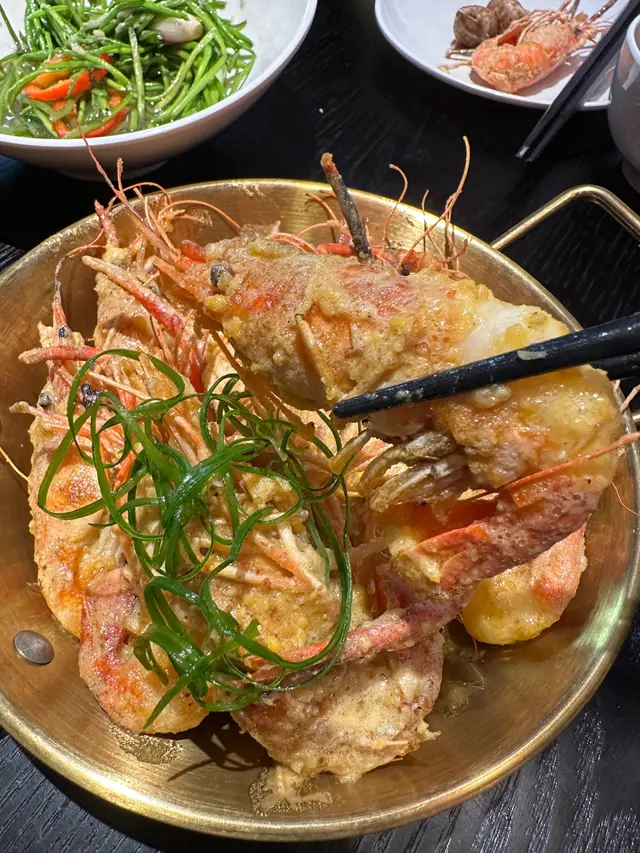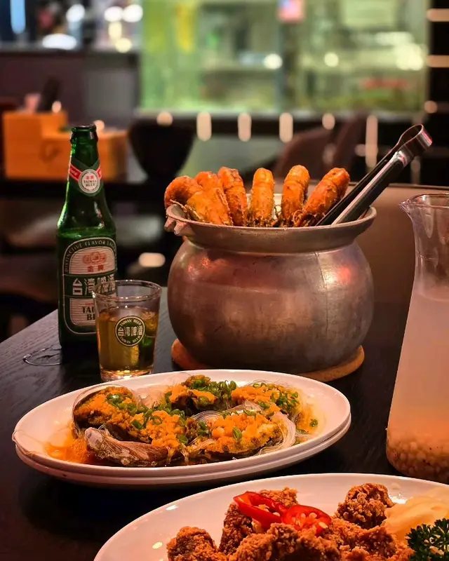 店內有魚缸去供應唔同既台式活蝦料理🦐座位都十分寬敞✨烤澎湖墨魚香腸新鮮澎湖墨魚配墨魚汁,咬落去啖啖都係墨魚口感好彈牙😋✨特製美國骰子牛牛味香濃,一口牛食得好方便✨胡椒蝦(小)甕煮胡椒蝦係來自台灣甕煮好處就係傳熱快保溫好蝦係用上羅氏蝦,又名大頭蝦🦐胡椒蝦同係台灣食一樣好重胡椒味👍🏻✨鹽嗆蝦(小) 反而無任何調味,只係用咗鹽,更加帶出蝦既鮮味同蝦更彈牙爽口✨手工芋泥球佐鹹蛋黃卡士達醬$38有驚喜,估唔到甜品都甘有心人手製造,外皮炸得香脆煙靭入邊嘅芋泥蓉係新鮮芋頭製造味道好濃芋頭又唔甜👍🏻👍🏻…查看更多