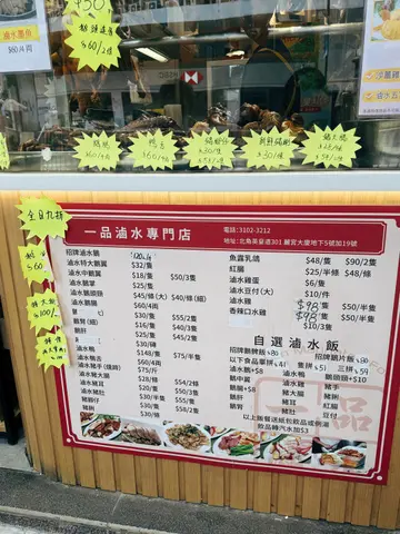 一品滷水專門店 (北角) 網址: https://s.openrice.com/QrbS0fB0C00 地址: 香港北角英皇道301-319號麗宮大廈地下5號舖 電話: +852 31023212