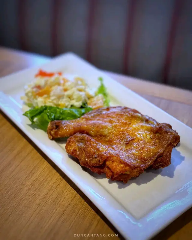 黑椒雞扒拼枝竹鮮冬菇配椰香海鮮湯和髪絲麵