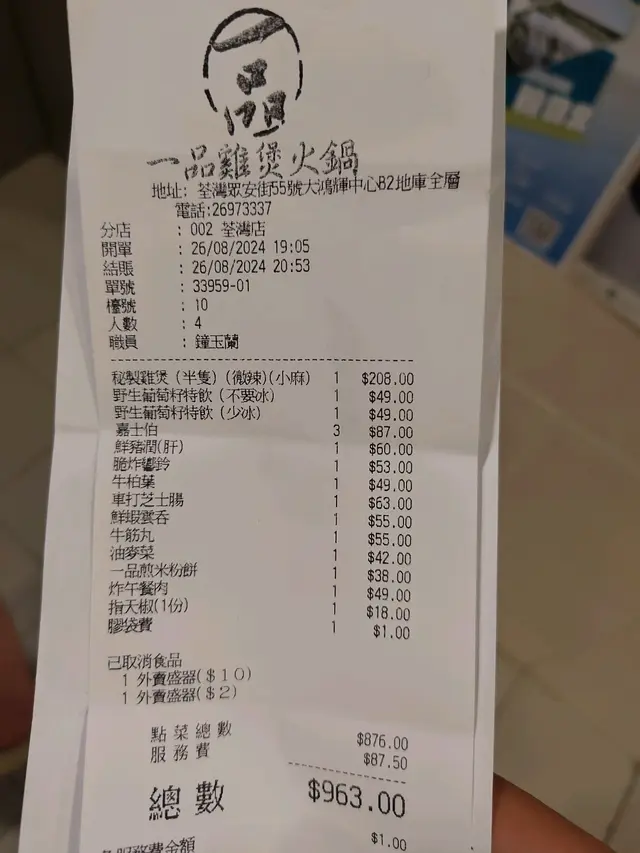 一品雞煲火鍋 (荃灣) 網址: https://s.openrice.com/QrbS0QeK200 地址: 香港荃灣眾安街55號大鴻輝(荃灣)中心地庫2樓 電話: +852 26973337