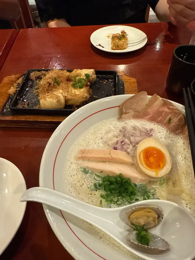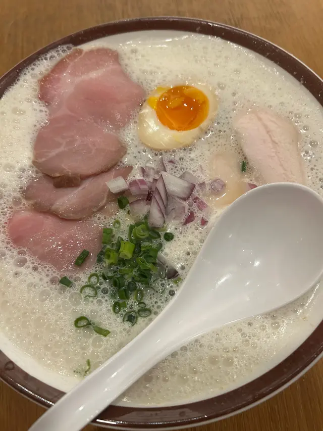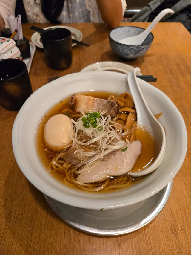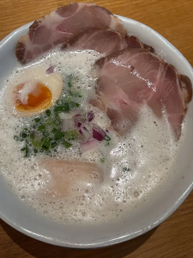 這碗拉麵色香味俱全,令人垂涎欲滴。湯底清澈透明,散發著誘人的香氣,喝上一口,鮮美的高湯讓人感受到濃郁的豚骨味,卻不會過於油膩,讓人覺得清新。麵條彈牙,口感滑順,完美吸附了湯汁,每一口都充滿了滋味。配料方面,叉燒肉質鮮嫩,入口即化,搭配著微微焦香的味道,令人難以抗拒。半熟的溏心蛋,蛋黃流心,增添了整碗拉麵的豐富層次感,而筍乾的脆爽也為這道菜增添了口感的對比。最後,細切的蔥花點綴其上,不僅提升了視覺美感,更增加了香氣。整體來說,這碗拉麵無論是在湯頭、麵條還是配料上,都展現了極高的水準,是拉麵愛好者不可錯過的美味選擇。查看更多