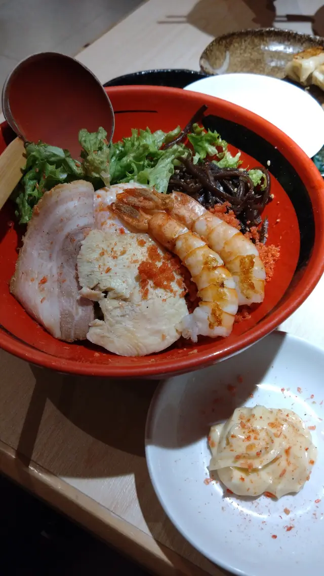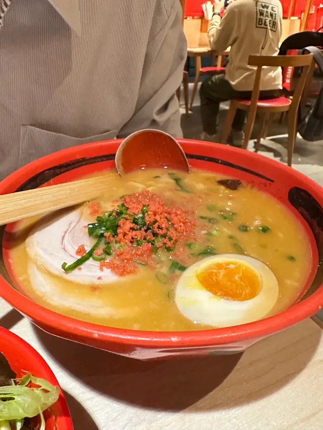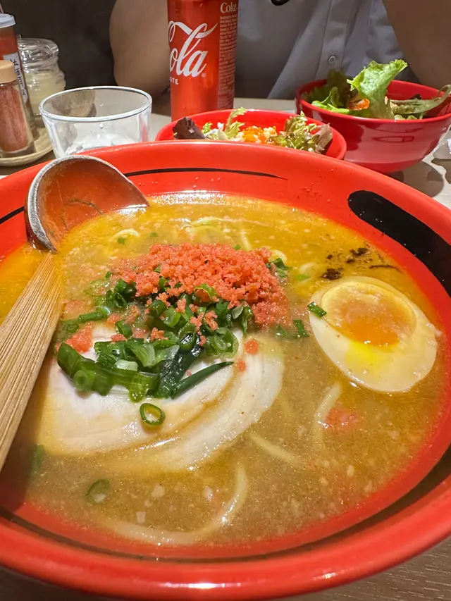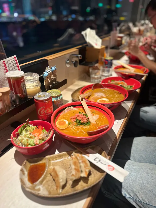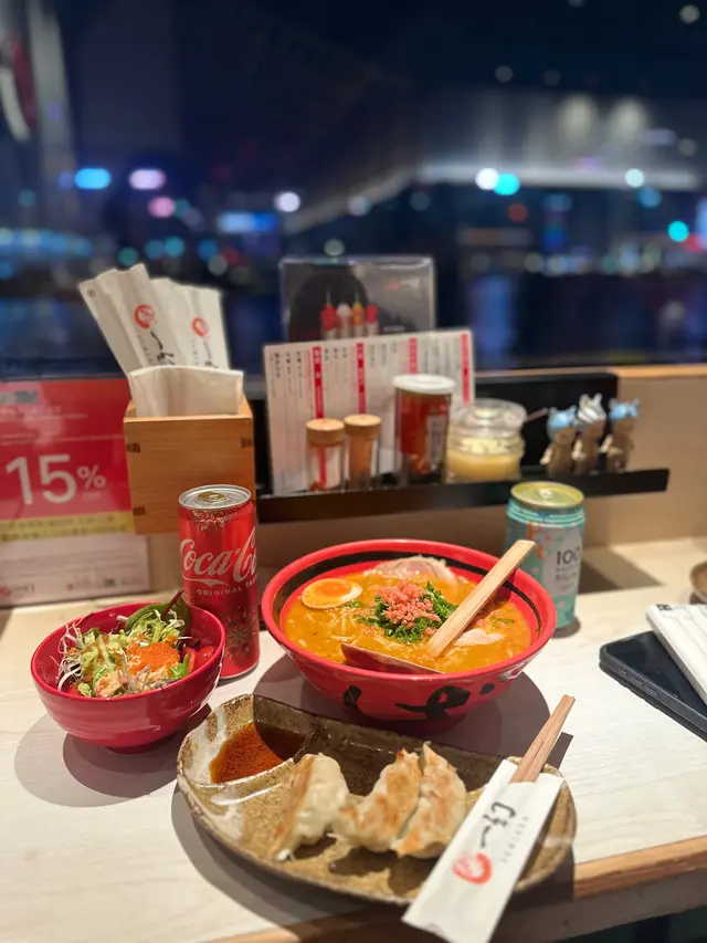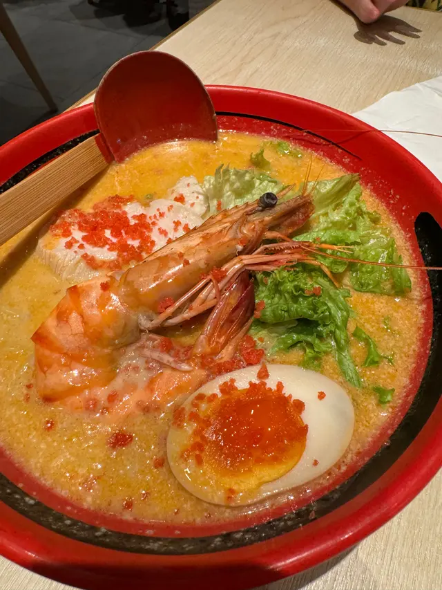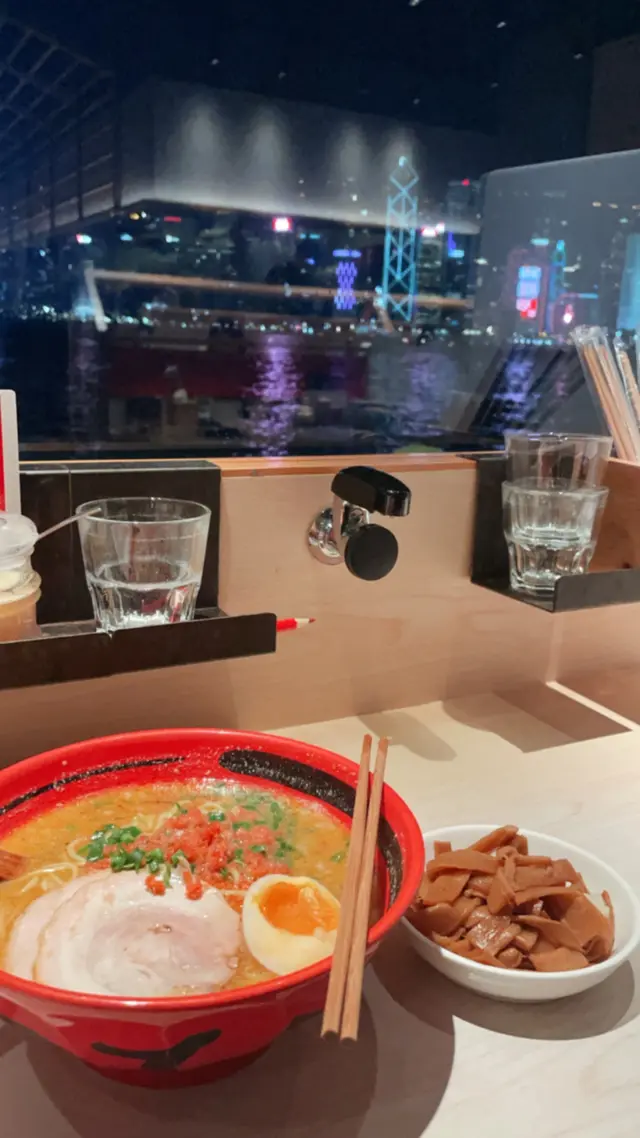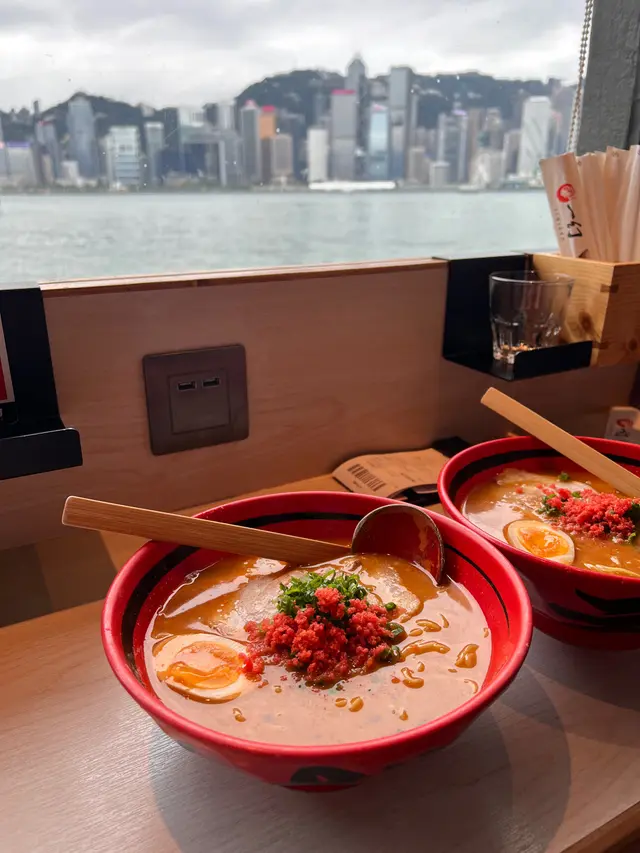 店舖位於海港城海運大廈地下,地點方便,而且餐廳內的裝修美觀,很有日式的感覺,裏面的座位舒適,窗口位還可飽覽維港的景色。很好彩我們獲安排坐在窗邊的位置,可以一邊吃麵,一邊欣賞維港夜景。店內還有冷熱飲用水提供,食客可隨便斟來飲用。🌟日本番茄蝦湯拉麵 ($78)拉麵可選粗麵或幼麵,我們選的是幼麵,可掛到更多湯汁。拉麵送上的時候是熱辣辣的,番茄蝦湯的湯味香濃,湯汁和拉麵的味道很夾,配料還有一片日式叉燒、半隻半熟蛋、蕃茄、粟米、蔥和脆脆。拉麵的份量也不少,好味又飽肚,而且價錢不貴。在尖沙咀用這個價錢吃到好吃的拉麵真是相當化算,食物的質素不錯,而且可以在舒服的環境內從落地玻璃窗欣賞維港景色,真是性價比高。店舖還會不定時有折扣優惠,真的很抵食。…查看更多
