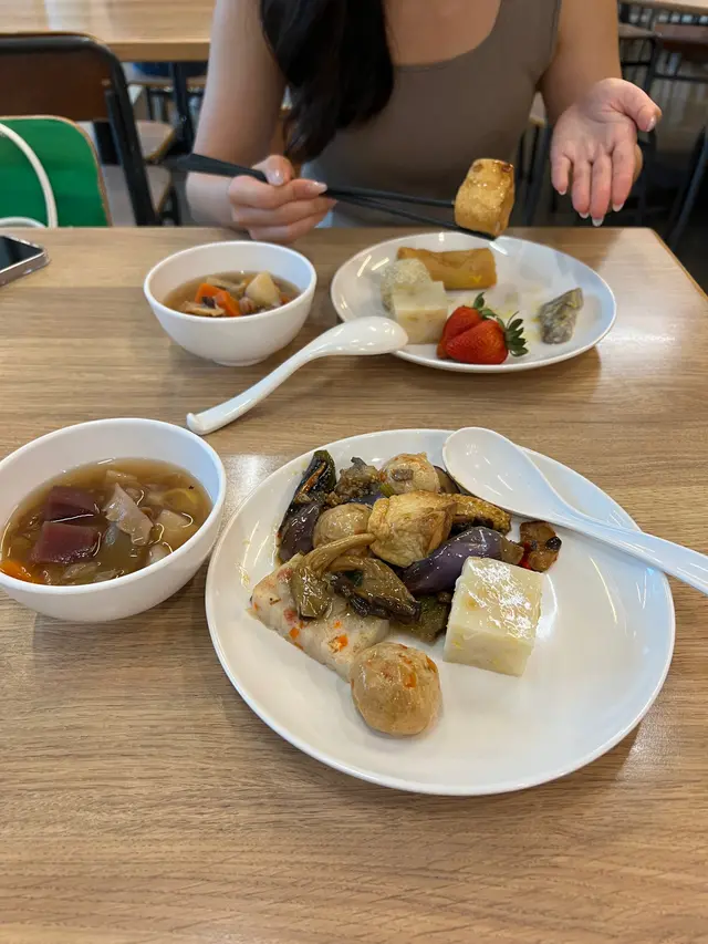 一坐低,覺得枱面好乾淨  唔係抹過嗰種乾淨  係冇乜雜念嗰種乾淨 🪷冇肉,冇香口嘢  但有豆腐、有茄子、有蒟蒻、有湯  每樣都好似唔打算同你講嘢  只係放咗喺碟上,等你慢慢咬🍆 茄子煮得腍,但冇失晒形  🍢 羅漢齋味道唔重,但帶啲甜  🍲 湯入面啲芋頭同紅蘿蔔切得好細  🍡 一粒粒素丸,有彈性,但唔係彈到嚇親你甜品係豆腐花狀嘅糕、煙煙韌韌  隔離有士多啤梨 🍓  同朋友一齊食緊,佢拎起舊豆腐問我:  「你覺得似唔似外國豆腐?」  我笑咗,但冇答可能食素唔係為咗清  只係為咗靜  靜到你會開始留意你咬咗幾多口  你今日講咗幾多句  你有冇真係坐喺度食緊…查看更多