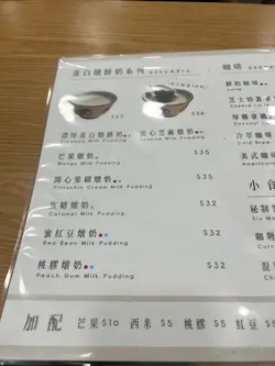 九龍城最近新開左間糖水舖,宋王臺地鐵站一出就見到~麻雀雖小,但五臟俱全。最經典嘅傳統糖水如紅豆沙、芝麻糊、薑汁撞奶都有,還有港式糖水如楊枝甘露、芒果小丸子、蛋白燉鮮奶等,也有少量台式茶飲和小食。個人最推薦嘅❤️薑汁撞奶‼️🔸即榨薑撞奶($38)薑汁撞奶即叫即整,薑汁和牛奶「撞」好後,要蓋上蓋靜置5分鐘才完成,最後可以擺到一隻匙羹喺面就係大成功!😂「撞奶」滑嫩而不稀,入口即化,薑的辛辣與牛奶的醇厚滑順結合,形成一種特別的香醇風味,同時具有暖胃驅寒的功效,冬天❄️食就啱晒~😎🔹白玉龍眼冰‼推薦‼見到Menu寫住有足足15粒龍眼,梗係要試吓佢啦!🐒😂上枱雖然只見到5粒冰凍龍眼喺面,其餘個10粒就喺個冰底度!?🤨不過個冰底龍眼味都真係幾突出,味道👅清甜,加上寒天、椰果、龍眼肉,口感就更豐富,清爽消暑,值得一試!🔸真D24榴槤冰‼推薦‼採用馬來西亞頂級品種 D24蘇丹王榴槤!😍😍原件榴槤果肉口感厚實綿密,甜味適中,冰底一樣加左榴槤果肉,食到一絲絲嘅榴槤口感,鍾意食榴槤嘅必試!🤩🥳🔹椰椰開心果糊($48)糊狀口感偏流質,同想像中有啲唔同,唔係杰撻撻嗰種,🥹可能叫開心果露會貼切啲。🤔不過勝在每啖都食到炒香的開心果碎粒、西米和椰奶凍,開心果迷可以一試!🔸芒芒小丸子($45)以新鮮的芒果🥭和牛奶製作而成嘅芒果奶,口感濃稠,味道清香,加上芒果果肉、西米、軟糯的小丸子等,帶來層次豐富的味覺體驗~🥰不錯吃!
