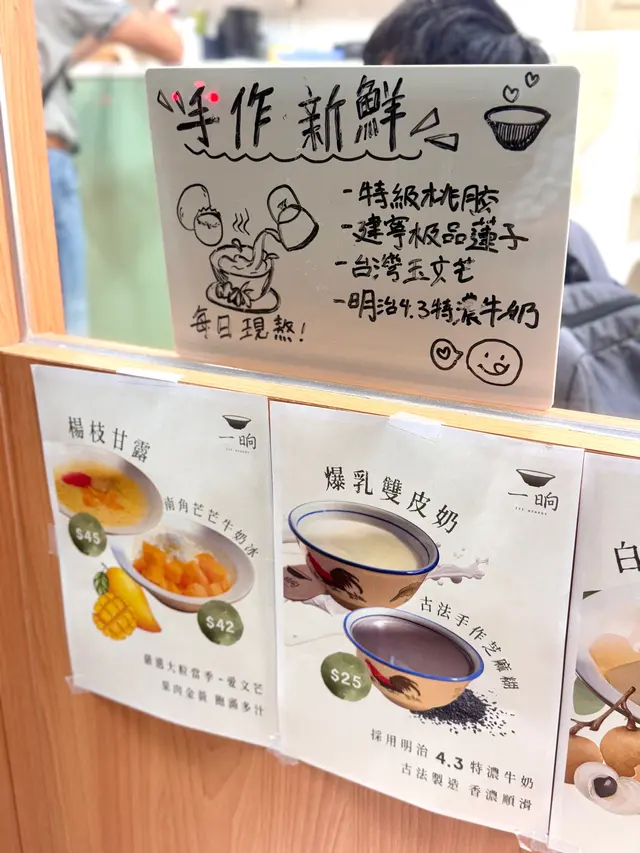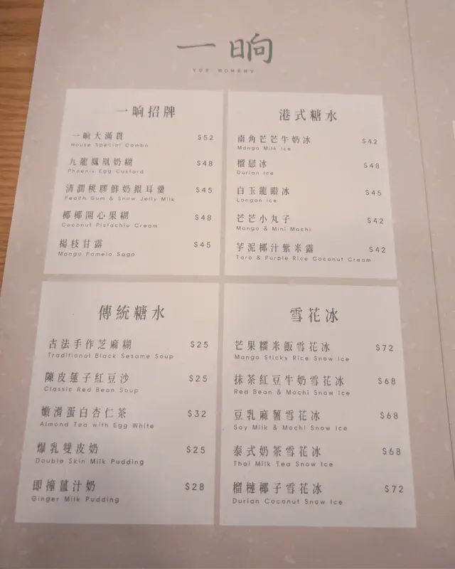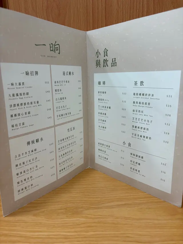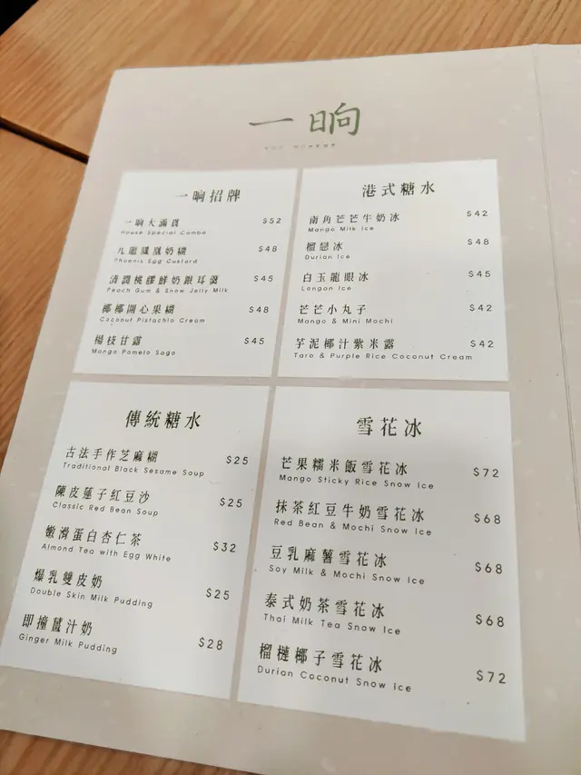 和朋友飯局後想吃甜品,來到在九龍城近南角道轉角新開的《一晌》,呢度啲甜品款式比較特別,和一般的甜品店不一樣,新穎傳統兼備,環境木系開揚,店員亦親切年輕!我哋叫咗幾款招牌,都是即叫即整:🔸白玉龍眼冰:龍眼肉鮮甜多汁,雪花冰細滑綿密,不太甜好啱我口味。🔸椰椰開心果糊:坊間好少見,這個甜品對於開心果控必試,創新fusion有驚喜!🔸真D24榴槤冰:D24榴槤香滑,配上綿滑雪花冰,Yummy!🔸焦糖燉奶:燉奶奶味香淳,頂層焦糖香脆,中西合璧的甜點好選擇。這裏的飲品都好有誠意:🔸芝芝芒芒小丸子:小丸子融合芝芒風味清新,創意組合。🔸黑糖桃膠鮮奶:桃膠有益又有口感,好滋潤嘅飲品。…查看更多