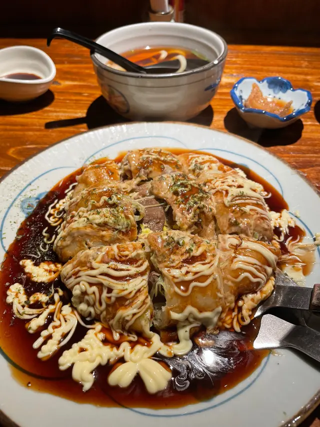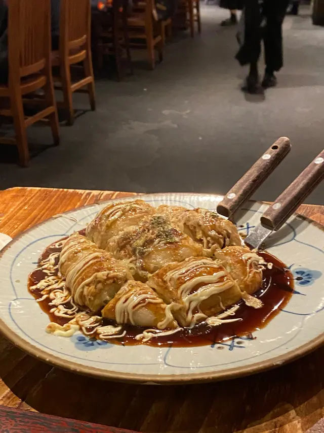 突然之間🤤好想食🏯關西燒🔥,即刻就😏諗起呢間居酒屋🥢!呢間居酒屋🏮已經係 APM 好多年,都幾大間幾多位🪑。餐廳裝修走🇯🇵日式懷舊風🧐。餐廳周圍都有唔同嘅🇯🇵日式佈置,感覺有啲似去咗🗾日本😂。呢個就係🏯一杯關西燒🫓,好香好好味😋,入邊餡料十分豐富🥰,我每次嚟都必食🤤!最開心嘅係佢入邊有🐂牛筋😍,令到成個關西燒味道更加有層次感😆!燒芝士年糕外面🔥燒到焦香,入面煙韌有米香,🧀芝士醬就唔算特別濃味,不過食起上嚟都幾滋味😋。呢個🌊東洋卷🤤係我心水之一,因為佢入邊有牛油果🥑同鰻魚,連埋飛魚子同外邊嘅班戟皮一齊食好好👍味😋!總結來講,呢間居酒屋🏮食物款式十分多,但佢哋嘅🏯關西燒🤤一定係必食嘅!…查看更多