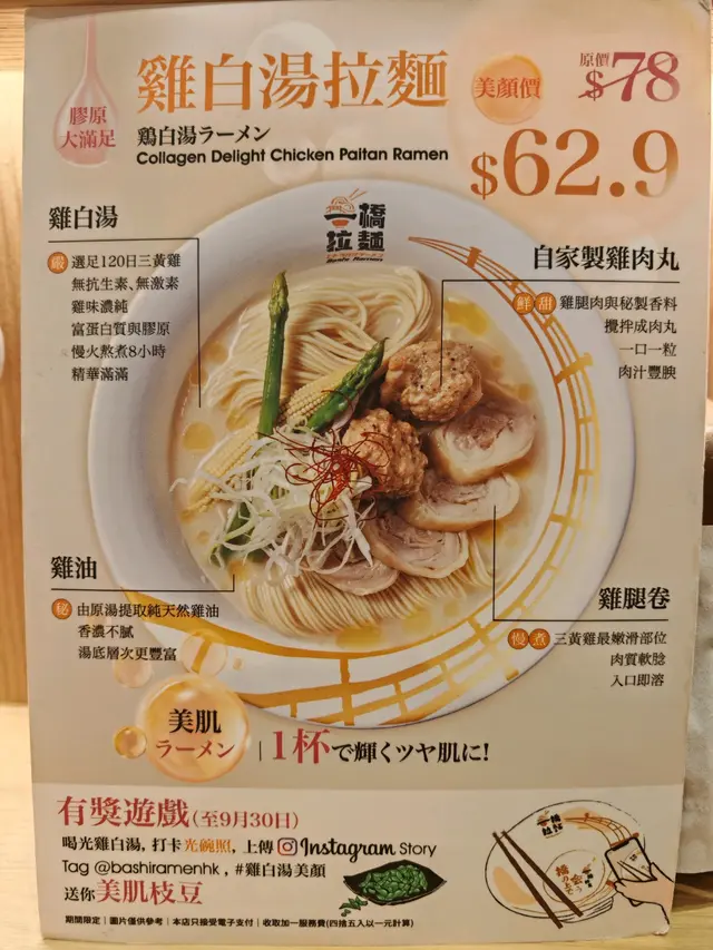 上上星期日,睇完早場的IMAX版你的名字,相隔多年再睇番都係咁感動流涕🥹🥹,老公係新海誠的忠實粉絲,佢已經睇到無感,但小妹都係係會流淚😭,真係好好睇!散場後出嚟見時間尚早,但又唔想餓住個肚仔到夜晚(當晚晚餐就係食唐坊火鍋私房菜啦),於是乎行落一層食碗麵🍜,呢一間被選中的拉麵店exactly喺正太興隔離😎正常就估到係同一個集團嘅🫣拉麵店叫《一橋拉麵》鄰近門口有雅座,行入店內在半開放式廚房旁則是吧檯座位,小妹被安排在吧枱,可能因為鄰近廚房關係冷氣唔太夠,因為小妹係會邊食邊流汗的人類🥹。一橋的拉麵款式都算多,一抬頭就見到平時喜歡吃的口味「雞白湯」,老公揀了招牌叉燒拉麵加配糖心蛋,小妹多加了一份糯米燒賣添。呢度的雞白湯湯底賣點係「膠原大滿足」,但不太似預期,小妹預期是湯底會比較濃厚,現實卻不是,唯一優點是雞肉丸有兩大粒、雞腿件有四大件,仲有價格優惠!因為小妹本身喜愛偏濃厚的雞白湯,所以先覺得唔啱小妹😊額外加配糯米燒賣,蒸得唔夠耐外皮唔夠透🤔蒸番耐啲會更好。老公選擇的招牌拉麵,正常發揮啦,叉燒唔錯👍🏻糖心蛋亦好靚仔,不過湯底偏咸,老公飲剩一大半~以集團經營的拉麵店算正常發揮,起碼食得飽,若再有機會會想食一橋拉麵的基本功☺️…Read More