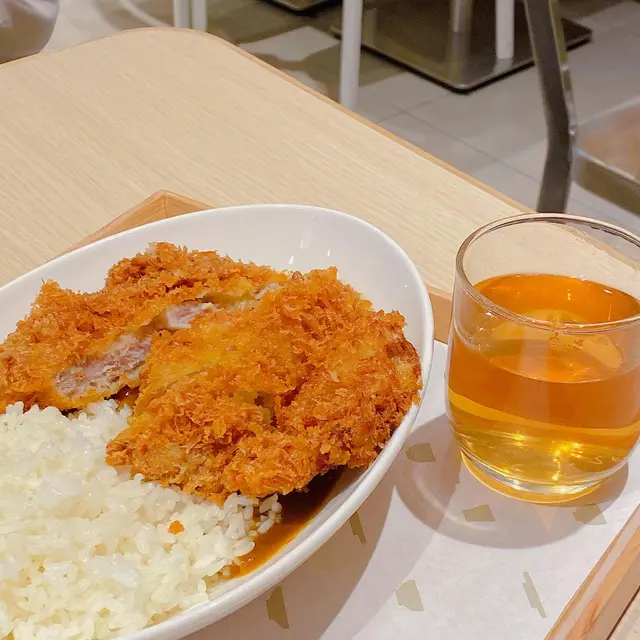 這道雞扒以豆乳和味噌調味,豆乳的滑順和味噌的鹹香,配上雞扒有種奶油味。配菜是日本馬鈴薯豚肉煮馬鈴薯和豚肉煮在一起,薯仔吸收了豚肉的汁水,入味十足,豚肉則不會過老,保持了適當的口感,還有芋絲吸收醬汁精華,這道配菜簡單卻充滿日式家庭菜餚的溫暖感。店舖使用田牧越光米,飯粒清晰,口感軟糯。飲品:蜜桃紅茶(凍)