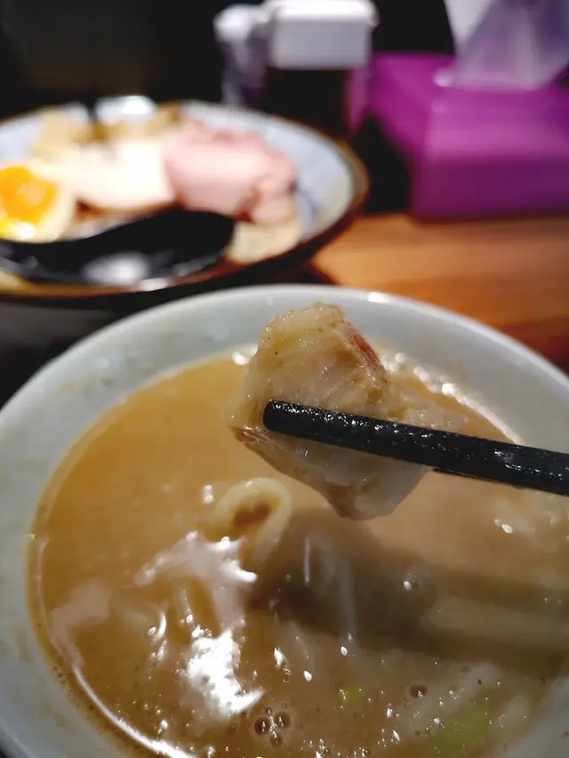 最近才知道鄰近淘大有個屋苑商場,裡面都有不少餐廳。今次經過附近,就試試這間擁有三間分店的「一生懸麵」。雞白湯拉麵 顏色雪白的雞白湯一看就覺得味道濃郁。湯表面帶點泡沫狀,令口感更順滑,同時令雞湯本身濃厚鮮香的味道更上一層樓。店長指定配搭幼麵,每條麵條都可以完全吸收湯的精華。麵硬度選擇標準,軟硬適中有彈性。雞肉和叉燒各有兩片,肉質細嫩。蘆筍鮮嫩,粟米仔就不過不失。一整隻的半熟蛋,使用日本蛋製成,蛋黃溏心,蛋白有彈性。魚介豚骨沾麵湯雖然沒日本那麼濃稠,可直接飲用,適合香港人口味,但不用擔心會太稀太淡,可能有叉燒粒令湯的味道保持一定的濃度。粗麵仍能掛湯,加上帶點柚子的味道,品嚐到魚介豚骨濃郁香味之餘,還帶一點清新口味。麵硬度同樣選擇標準,而溫度選了熱麵。一般會擔心熱麵會太軟,放久了會變糊。這裡的熱麵沒有這個情況,標準麵條軟硬適中,由始至終麵條狀況良好,口感煙韌。火灸豚肉令豚肉和油脂變得更香,瘦肉部份軟嫩,油脂部份鬆化,但略嫌帶一點點油膩感,但不影響總體體驗。竹筍清新易咬開,另有真半熟蛋,同樣蛋黃溏心,蛋白有彈性。如果未能去日本,這裡的拉麵和沾麵可以一解鄉愁。…查看更多