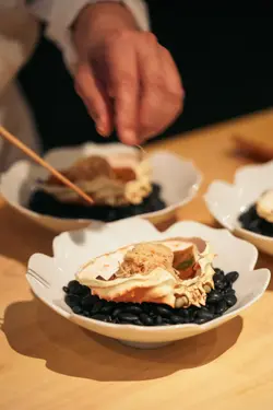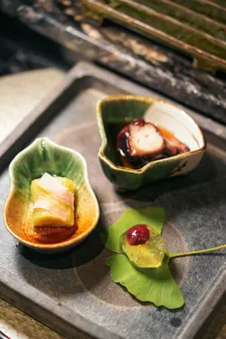 A friend took me on a fancy refined Japanese cuisine after losing a bet 😂😂 We started by ordering Kanagawa octupus Kyoto egg plant and Shizuoka tomato Jerry, the dish had three distinct components presented on a rustic stone plate Emphasising seasonal Elegance.The we had the Hokkaido hairy crab ,what melted my mouth was the Five seasonal sashimi ,thinly sliced,unique texture and flavours oh can’t forget the freshness, I highly recommend this dish.We then got my favourite pigeon sichuan pepper style , unique flavour was very tasty.More snow crab shumai kyoto black vinegar came in, The green Chilled cucumber puree melon was mild Subtly sweet,and intensely refreshing taste.I highly recommend this restaurant Every dish we ordered was bursting flavour, the presentation was impressive,the waitress were friendly, Hands down ,one of the best Japanese dining experiences.…Read More