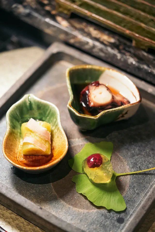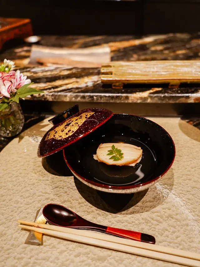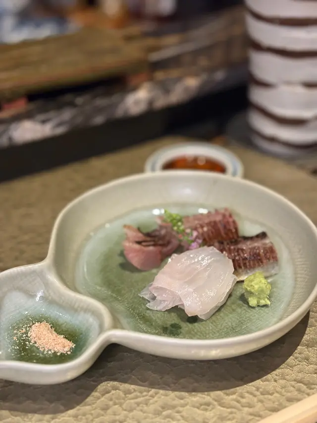 A friend took me on a fancy refined Japanese cuisine after losing a bet 😂😂 We started by ordering Kanagawa octupus Kyoto egg plant and Shizuoka tomato Jerry, the dish had three distinct components presented on a rustic stone plate Emphasising seasonal Elegance.The we had the Hokkaido hairy crab ,what melted my mouth was the Five seasonal sashimi ,thinly sliced,unique texture and flavours oh can’t forget the freshness, I highly recommend this dish.We then got my favourite pigeon sichuan pepper style , unique flavour was very tasty.More snow crab shumai kyoto black vinegar came in, The green Chilled cucumber puree melon was mild Subtly sweet,and intensely refreshing taste.I highly recommend this restaurant Every dish we ordered was bursting flavour, the presentation was impressive,the waitress were friendly, Hands down ,one of the best Japanese dining experiences.…查看更多