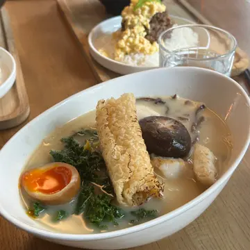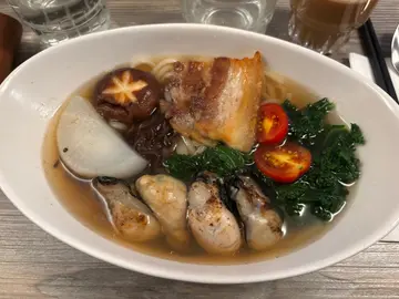 同同事嚟食過幾次,佢介紹我食蟹黃油烏冬,加埋佢個自家調製嘅甜醋,蟹味出晒嚟好濃郁啊⭐️🌟😋之後又食過迷迭香蒜片燒西冷扒同埋韓式黑豚豬都好出色,好惹味又Juicy,我覺得佢哋用嘅肉類同蔬菜都好新鮮,今時今日物價上漲真係難得佢哋做到呢個水準😁💪🏻今日唔想食肉試吓個煎石斑柳魚湯烏冬,食得出係用新鮮魚熬嘅鮮甜味🐟😋,抵贊呀🤩🤩我覺得喺中環食嘢一係好貴,一係食外賣,如果想坐低又可以同同事吹吓水嘅,呢度食得安心味道又好,仲包一杯飲品我覺得好滿意😀🌟👍🏻…查看更多