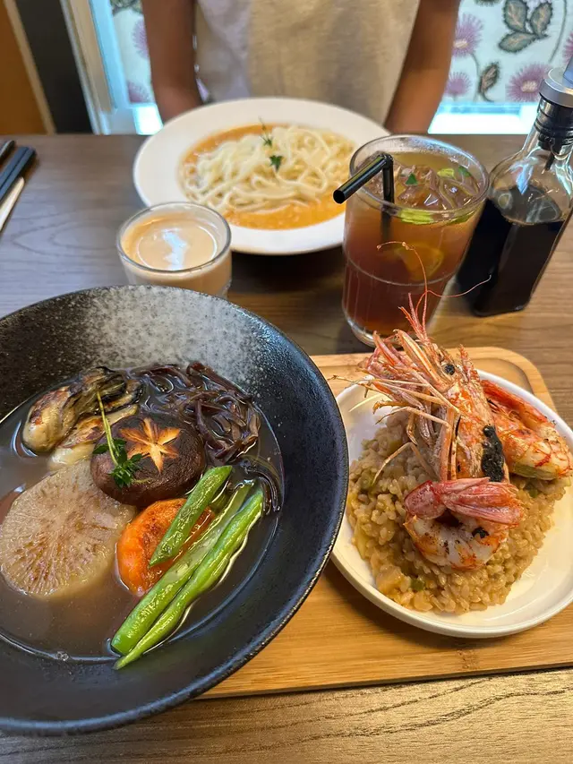 呢間喺中環士丹利街一棟大廈裏面嘅餐廳,喺中環朋友就介紹呢一間嚟試吓,咁我上到嚟睇吓個環境,人已經唔係好多㗎啦,可能因為呢間舖頭$$都相對比較貴,我諗佢哋係想打一啲稍為高檔啲嘅fusion菜啦。睇佢個Menu佢有鮮蟹肉嘅稻庭烏冬,仲有赤蝦嚟煮嘅濃湯泡飯。我哋兩個就試咗依兩個。我諗蟹肉烏冬同埋赤蝦泡飯呢可能一個人嗌一份其實係唔係好夠啊佢係比較係適合中餐一班人大家share呢咁可能會好啲因為其實真係食唔飽!味道我覺得中規中矩啦!查看更多